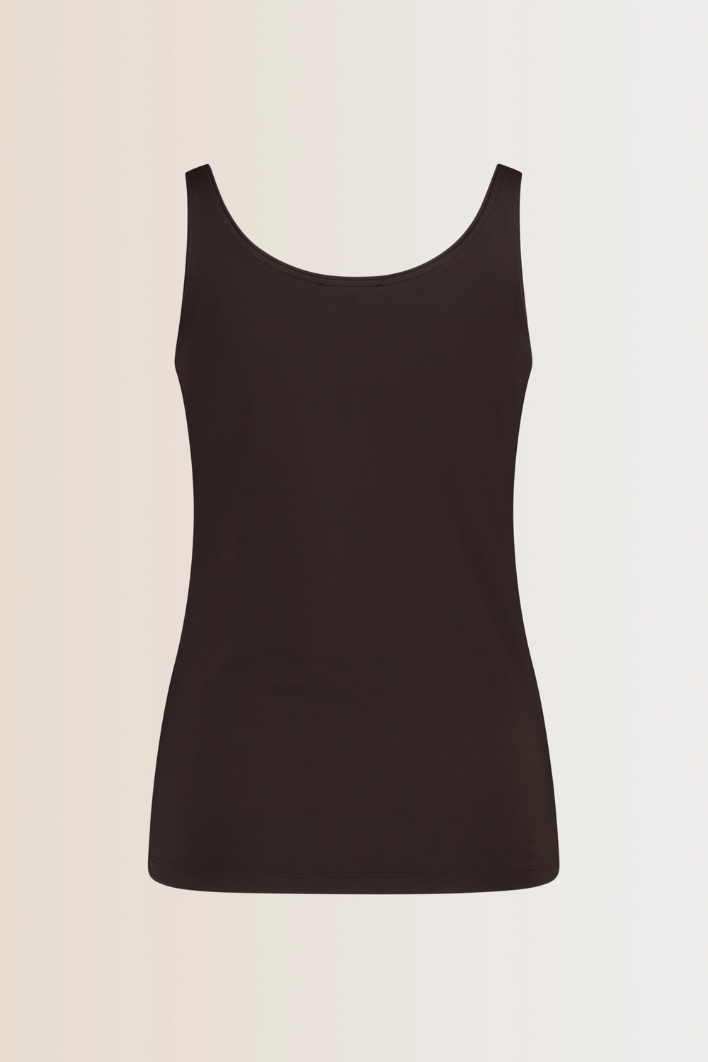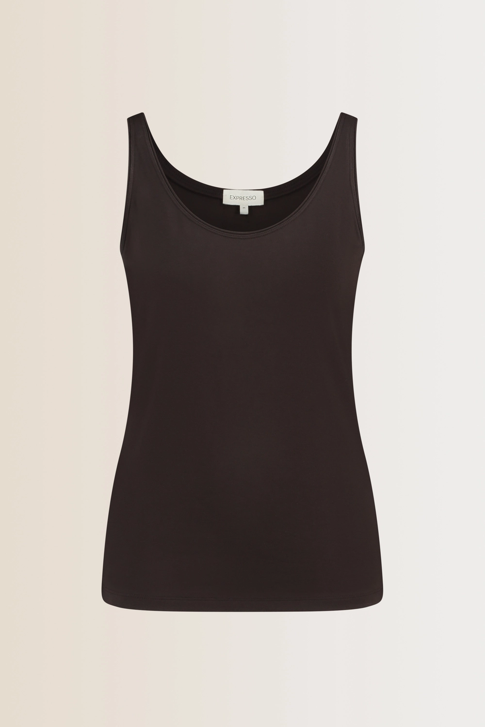 Bruine top – zachte jersey van viscosemix. Aansluitend, met ronde hals en brede schouderbandjes. Deze top is een veelzijdige essential in een frisse kleur. Ideaal als basis onder blazers of vesten, maar ook mooi solo op een zomerse dag.