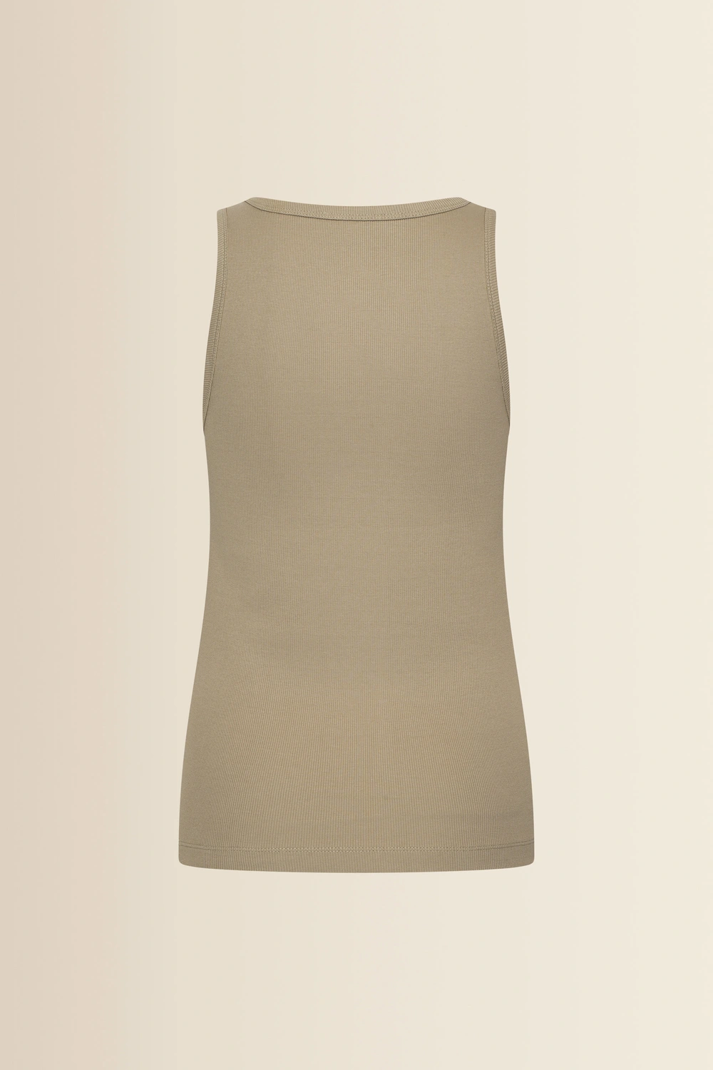 Groene ribgebreide top – comfortabele basic met een vrouwelijke, tijdloze uitstraling. Aansluitend en stretchy, met een ronde hals en brede schouderbanden voor een mooie, flatterende fit. De zachte ribkwaliteit draagt prettig op de huid en maakt deze top ideaal om solo te dragen of als basis onder een vest of blazer. Een onmisbare essential die je eindeloos combineert, het hele seizoen door.