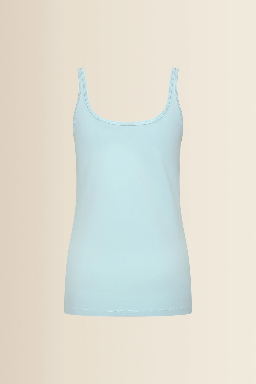 Blauw singlet – zachte, soepele jersey met een comfortabele stretch. Tijdloos en vrouwelijk, uitgevoerd met een ronde hals en brede schouderbanden. De top voelt zacht aan op de huid en maakt deze singlet ideaal als basis onder een blouse of blazer, maar ook mooi op zichzelf tijdens warmere dagen. Een onmisbare essential voor elke garderobe.