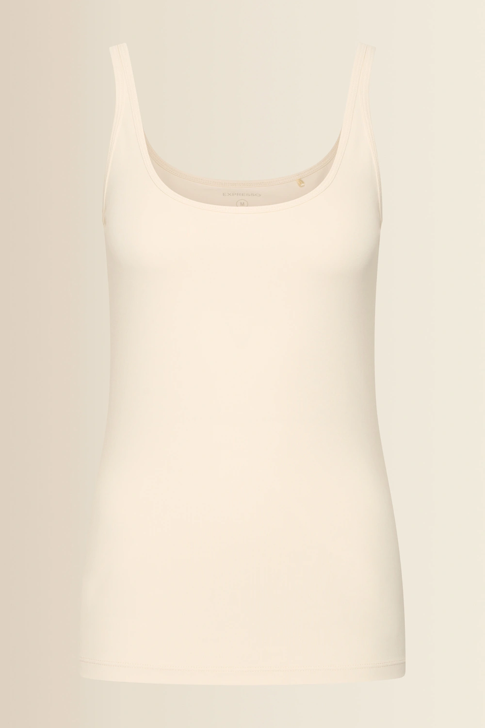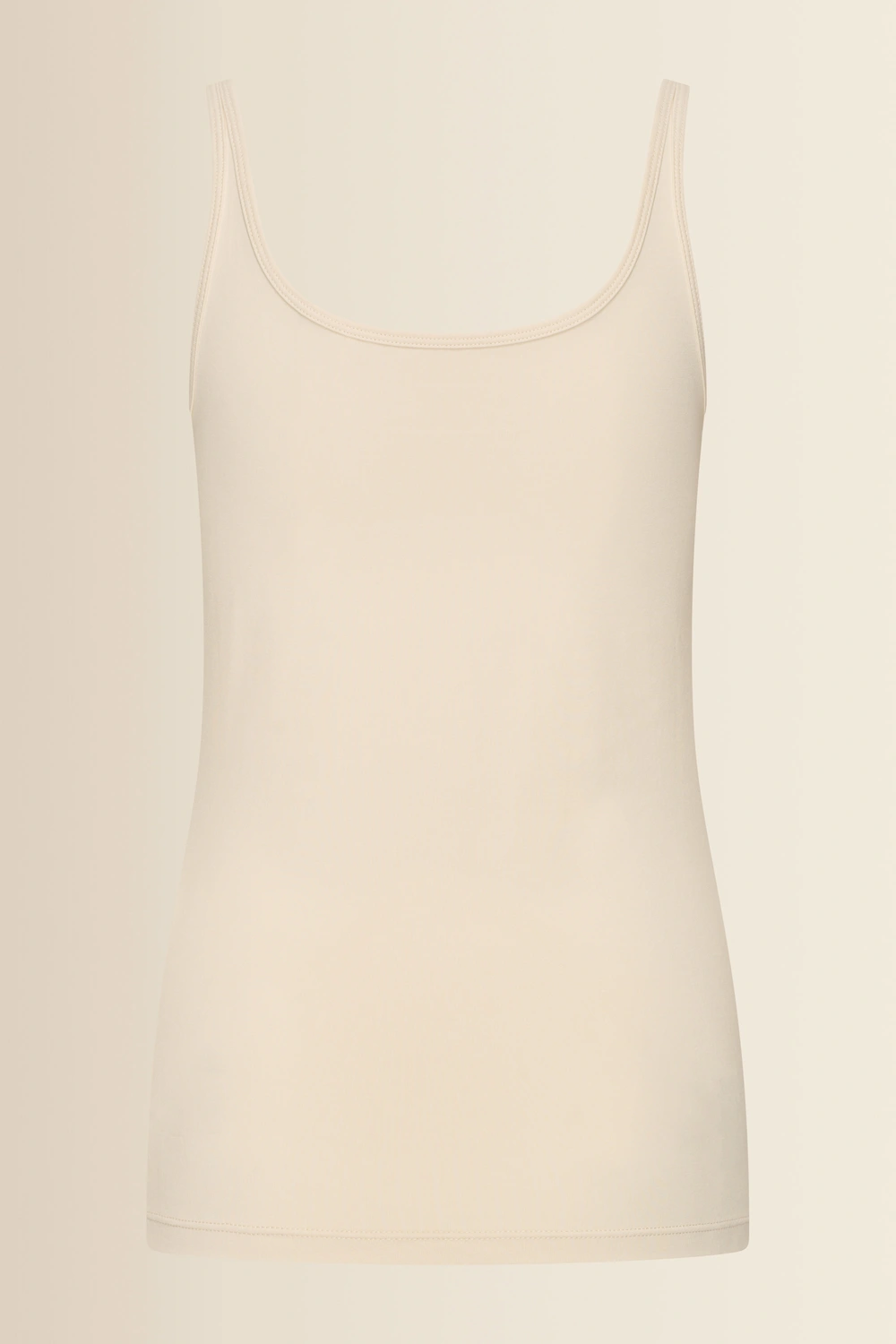 Ecrukleurige singlet – zachte, soepele jersey met een comfortabele stretch. Tijdloos en vrouwelijk, uitgevoerd met een ronde hals en brede schouderbanden. De top voelt zacht aan op de huid en maakt deze singlet ideaal als basis onder een blouse of blazer, maar ook mooi op zichzelf tijdens warmere dagen. Een onmisbare essential voor elke garderobe.