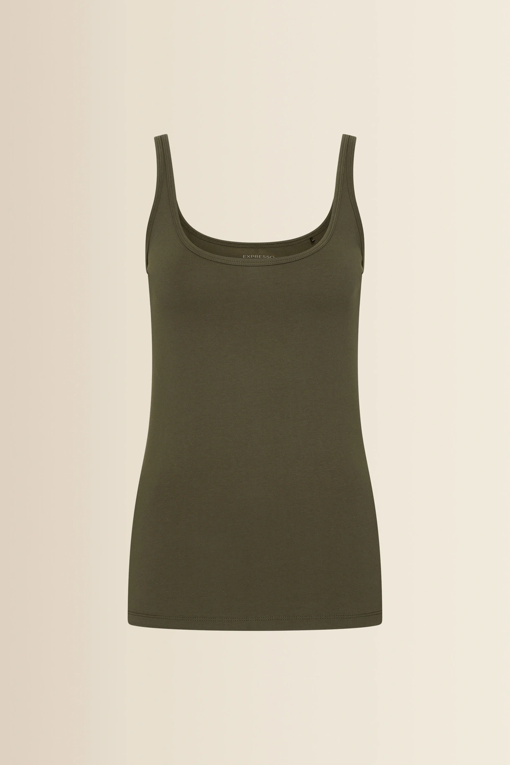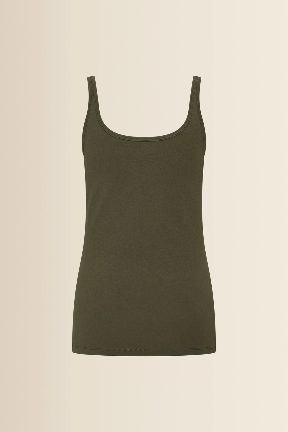 Donkergroen singlet – zachte, soepele jersey met een comfortabele stretch. Tijdloos en vrouwelijk, uitgevoerd met een ronde hals en brede schouderbanden. De top voelt zacht aan op de huid en maakt deze singlet ideaal als basis onder een blouse of blazer, maar ook mooi op zichzelf tijdens warmere dagen. Een onmisbare essential voor elke garderobe.