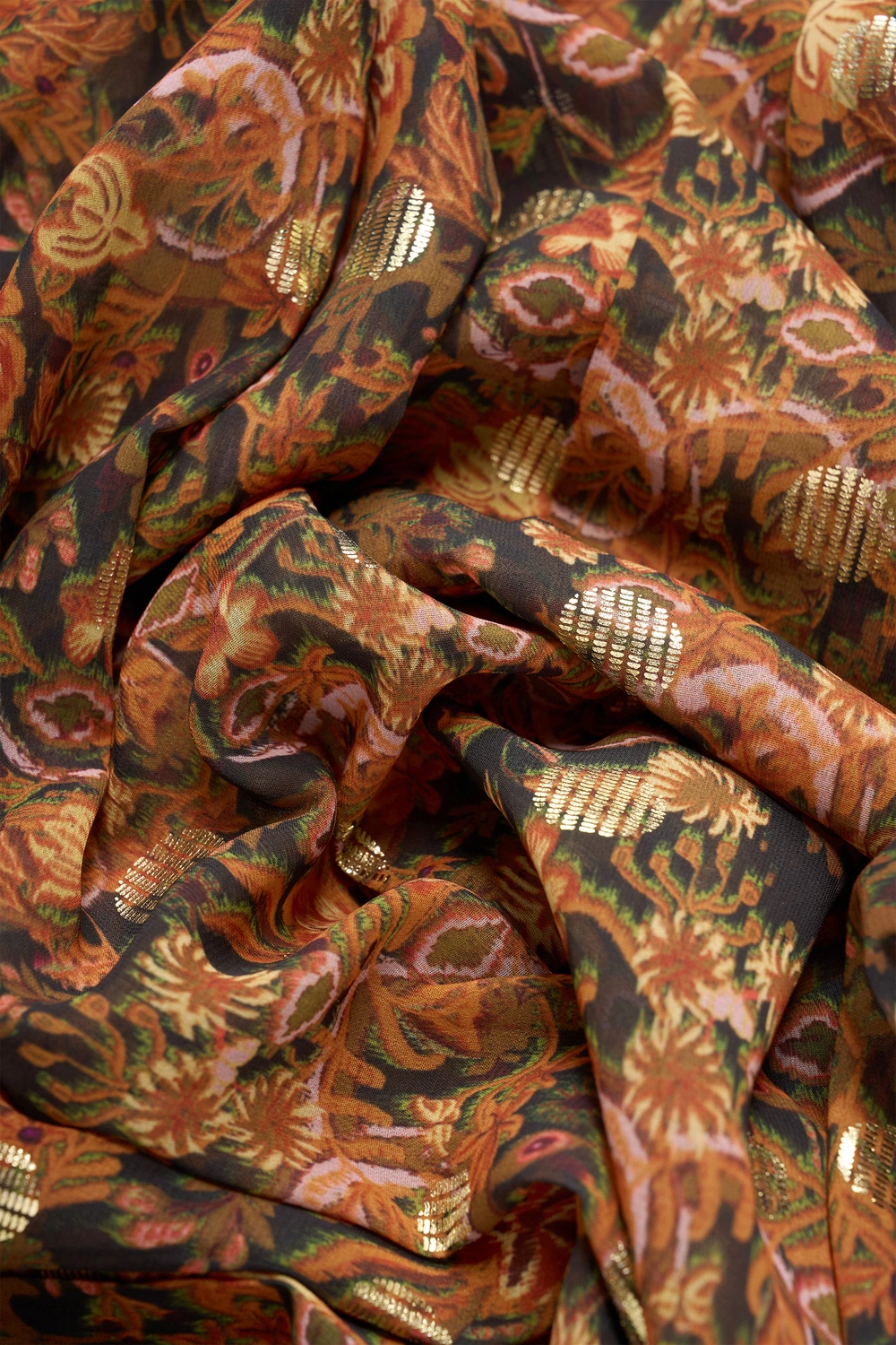 Semi-transparante blouse met bloemenprint – luchtige kwaliteit in warme herfsttinten. Rechtvallend model met lange mouwen, klassieke kraag en knoopsluiting. De all-over bloemenprint met subtiele metallic accenten geeft deze blouse een feestelijke en vrouwelijke uitstraling.