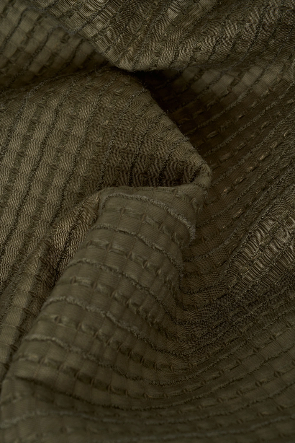 Donkergroene blouse – licht transparante kwaliteit met een verfijnde structuur. Deze blouse heeft een klassieke kraag, een doorknoopsluiting en lange mouwen met een subtiel volume. De zachte lila tint en de fijne geweven textuur geven het item een vrouwelijke, frisse uitstraling. Dankzij de luchtige stof draagt de blouse comfortabel en is hij perfect voor zowel een casual look als een verzorgde werkoutfit.