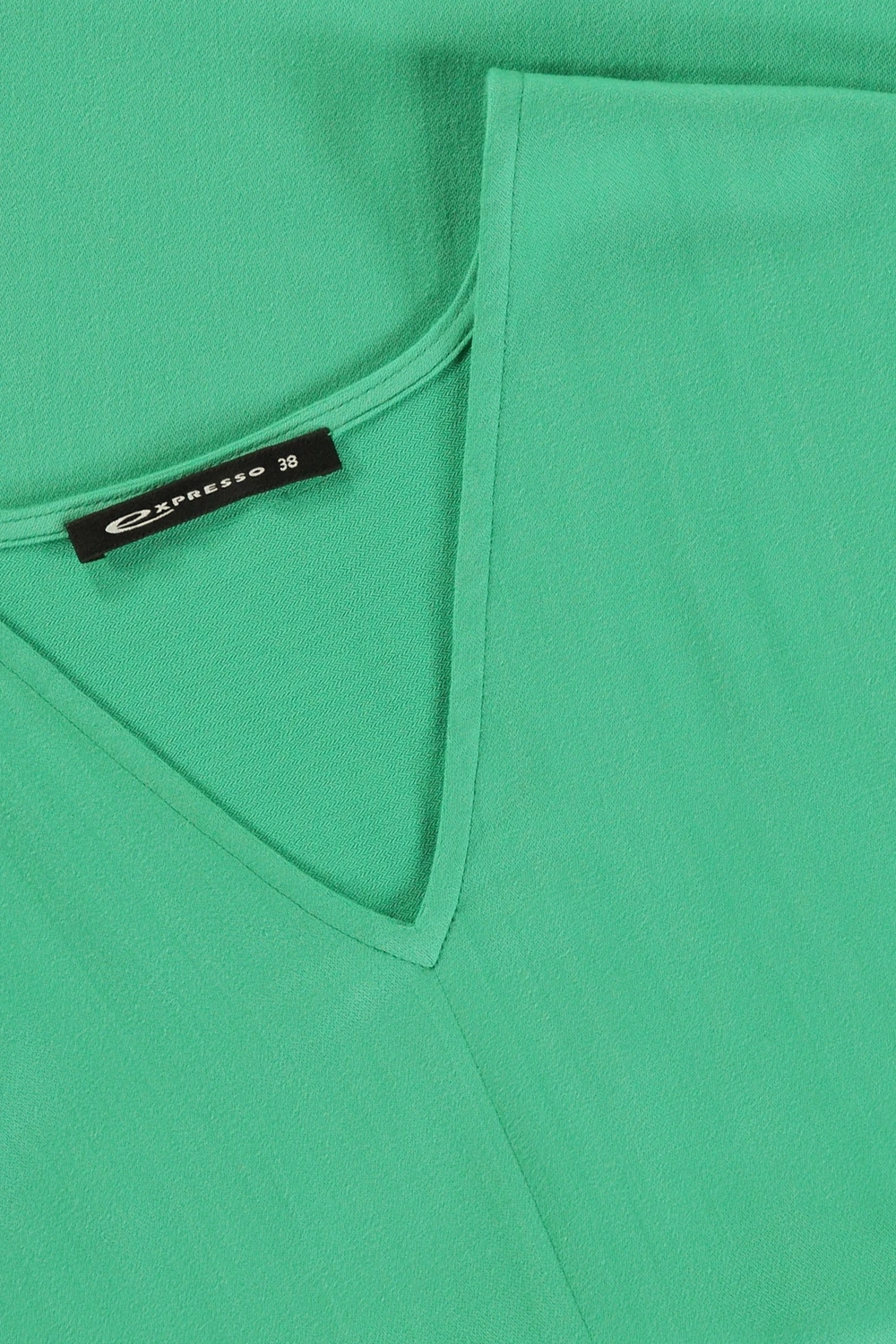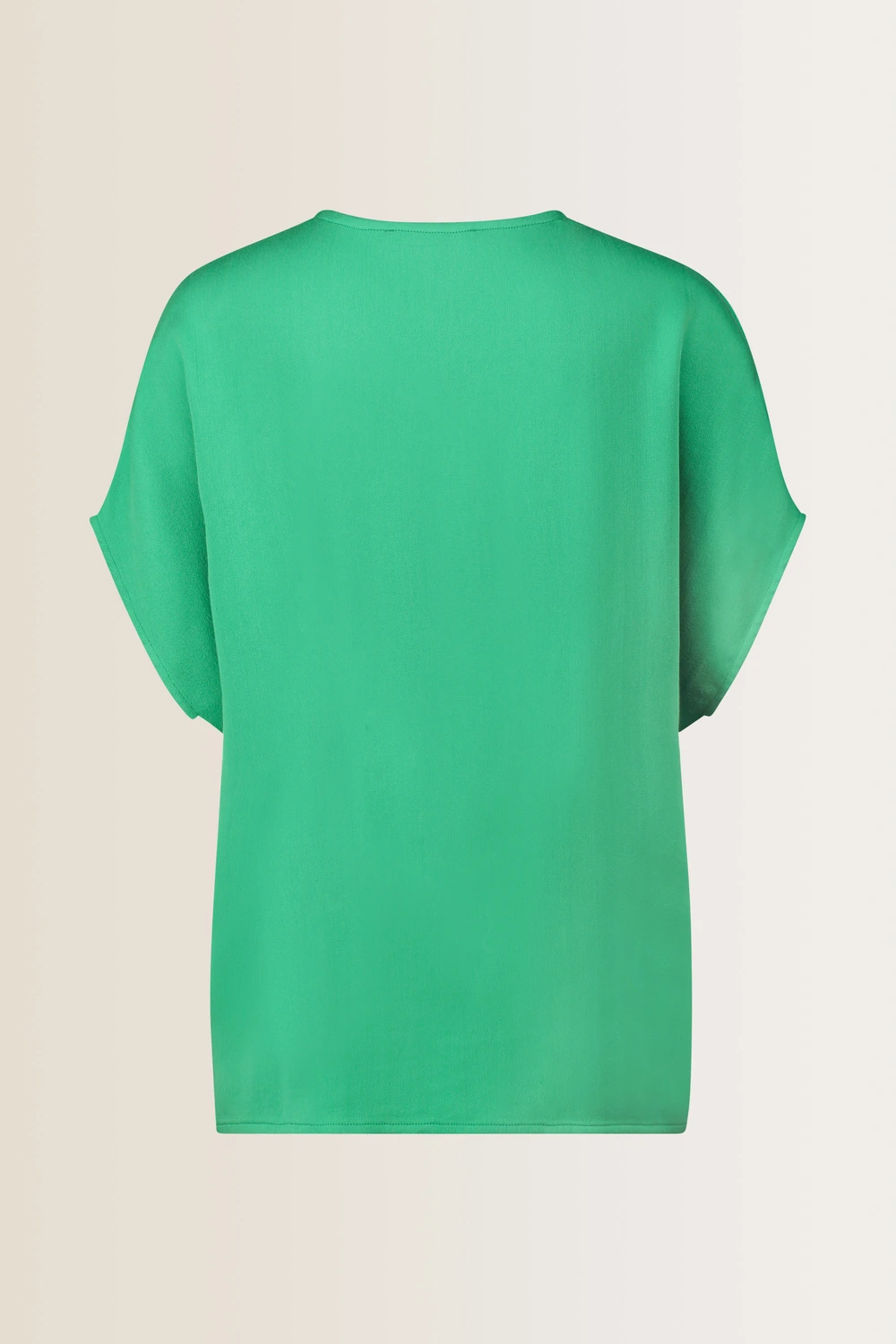 Flessengroene blousetop – lyocell mix. Rechte wijde pasvorm, V-hals, aangeknipte korte mouwen. Flowy twill, zachte peach finish. Flessengroen met een vleugje mint, past perfect bij je nazomertint. Tip: style bloezend in de tailleband van de bijpassende pull-on broek.