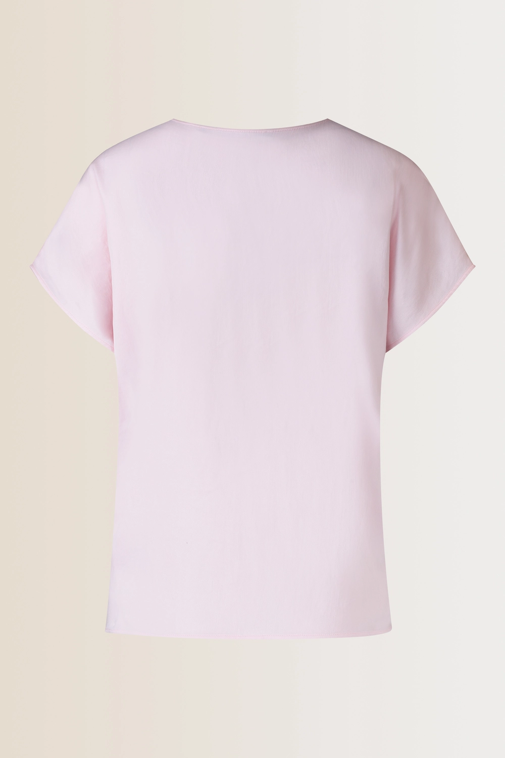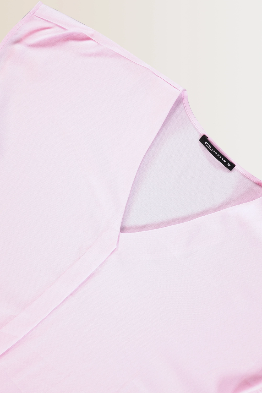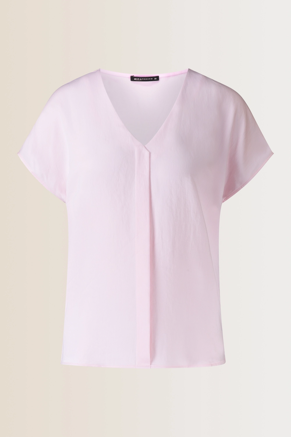 Blousetop – lyocell-mix. Rechte pasvorm, V- hals, korte kapmouwen. Soepelvallende stof, licht glanzend. Een luxe basistop om eindeloos mee te combineren.