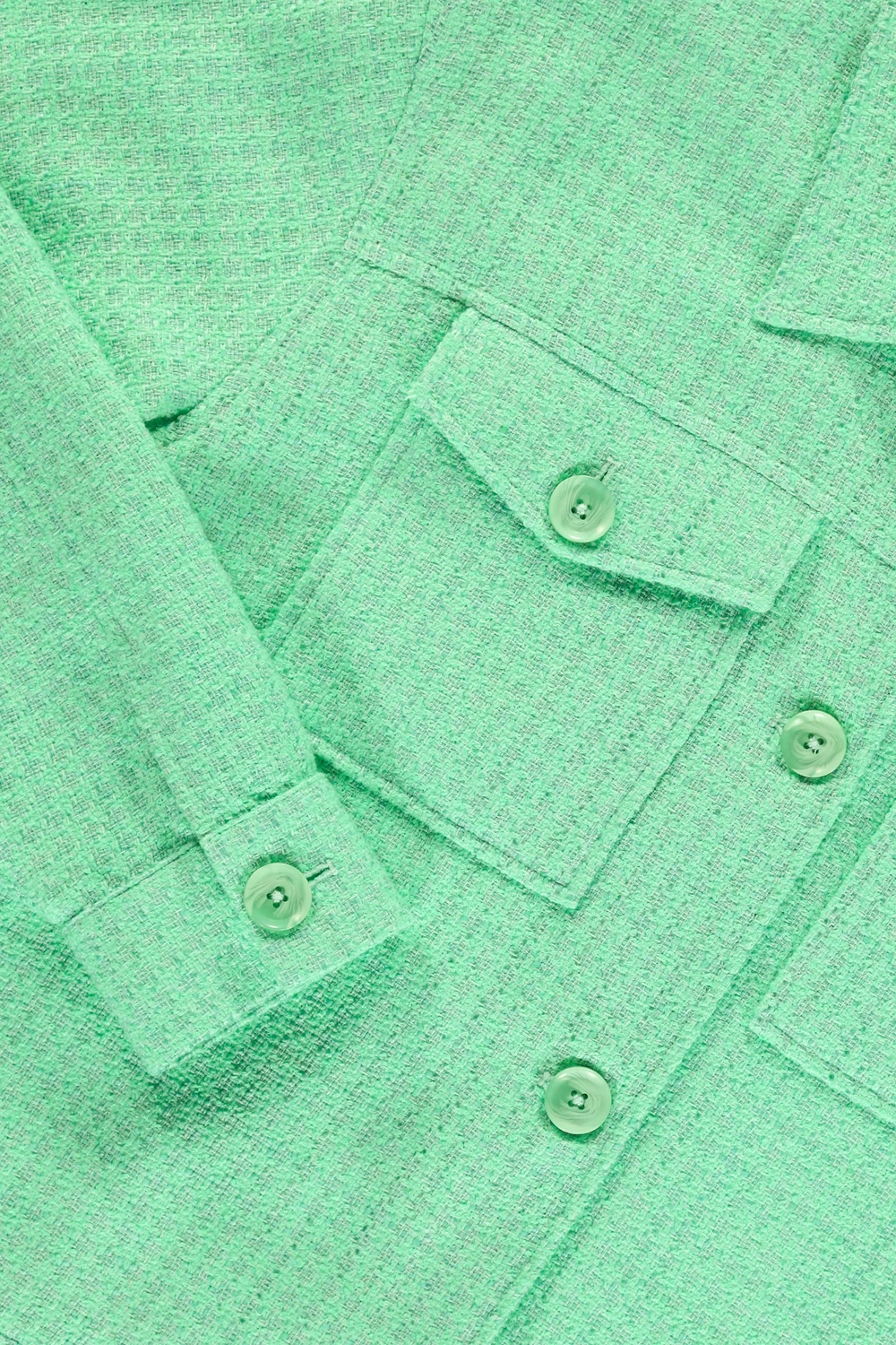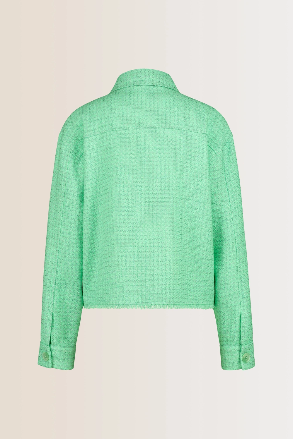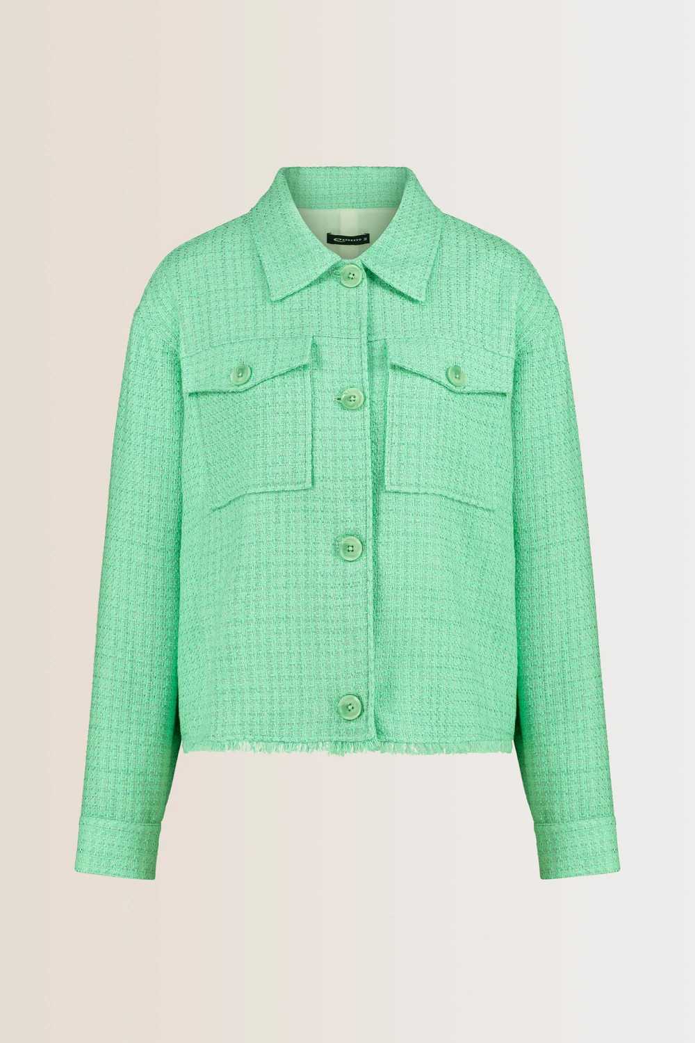 Mintgroen jasje – katoenmix. Kort & recht, knoopsluiting. Katoenmix bouclé, gemêleerd. Trendy twist: de combi van klassieke bouclé-stof en een moderne boxy pasvorm. Ook in dit thema: een bijpassende top en broek, maar ook de 5-pocket van cleane denim staat hier geweldig bij.