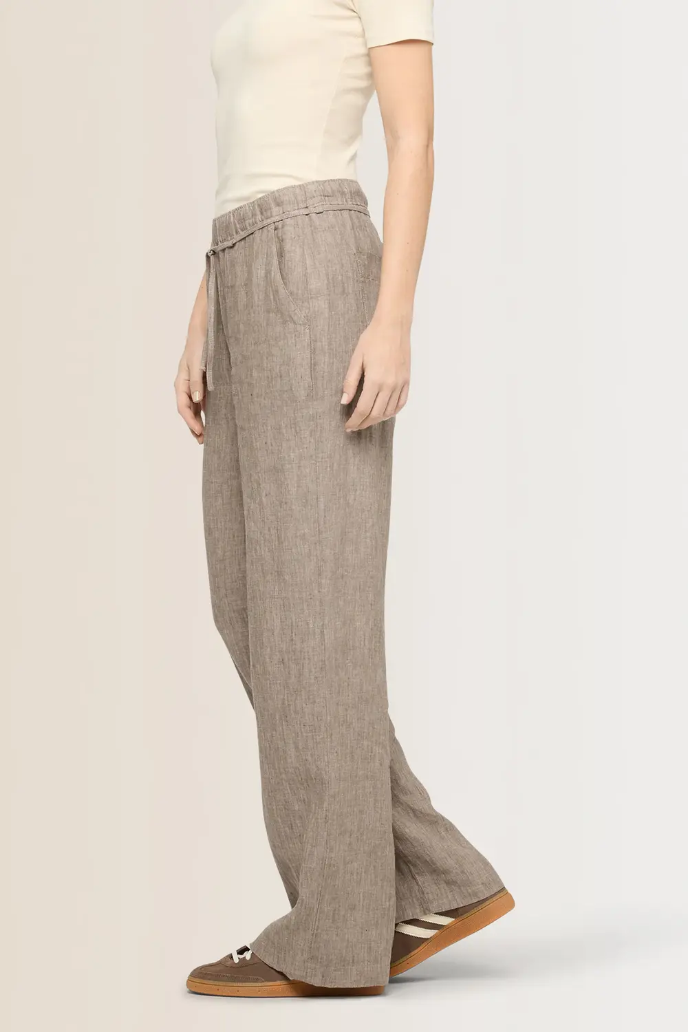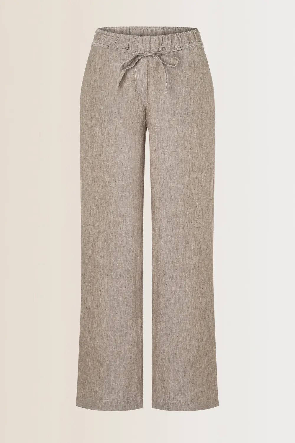 De CHIARA BELT broek van MAC -pure hoogwaardige linnenkwaliteit. Dit pull-on-model heeft een wide fit met wijde, rechte pijpen en een middelhoge taille. De elastische band en strikceintuur zorgen voor een comfortabele pasvorm, terwijl de lichtgewicht kwaliteit temperatuurregulerend werkt en prettig aanvoelt. De nonchalant-elegante uitstraling maakt deze broek een stijlvolle favoriet voor warme dagen.