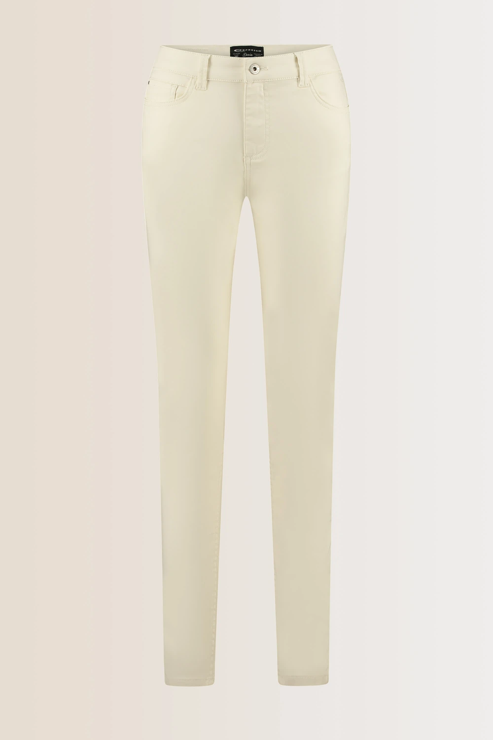 Offwhite coated skinny – stretch katoenmix met glanscoating. Middelhoge taille, slim-fit pasvorm, lengte tot de voet. Dé musthave Expresso-klassieker: onze coated 5-pocket met perfecte pasvorm. Nieuwe seizoenskleuren om eindeloos mee te combineren!