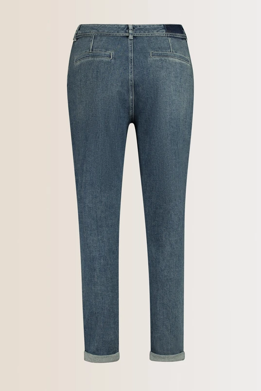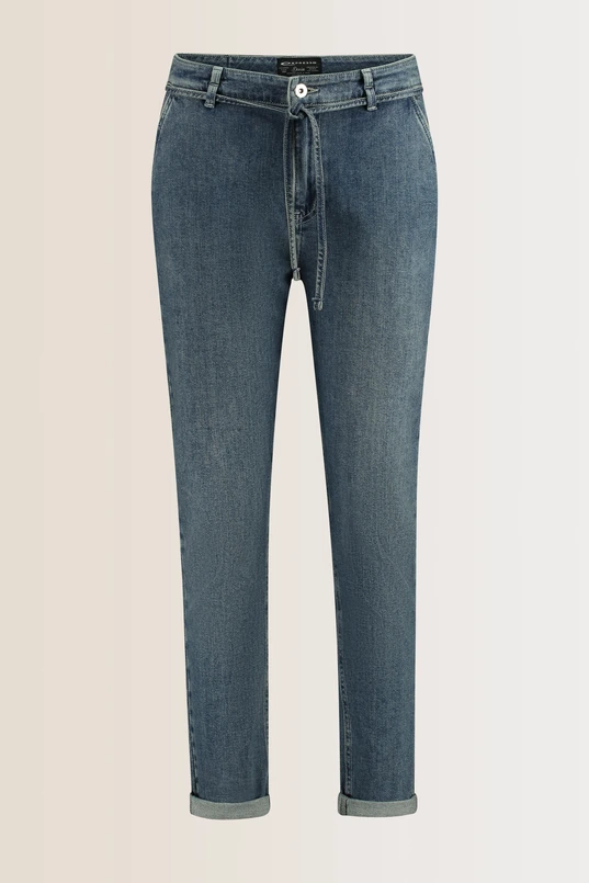 Indigo blauwe jeans – stretch katoenmix. Relaxed fit met taps toelopende pijpen en een comfortabele tailleband met striksluiting. Gemaakt van zacht en stevig denim in een stijlvolle vintage wassing. Een tijdloze must-have die elke outfit compleet maakt. Tip: combineer met een oversized trui of een nette blouse voor een casual-chique look.