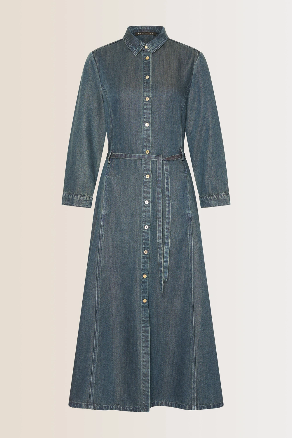 Denim jurk – 100% kwaliteit. Denim meets elegance: deze licht getailleerde jurk combineert een klassieke overhemdlook met een vrouwelijke A-lijn. Het stevige denim materiaal geeft de jurk structuur, terwijl de taille met strikceintuur je silhouet mooi accentueert.