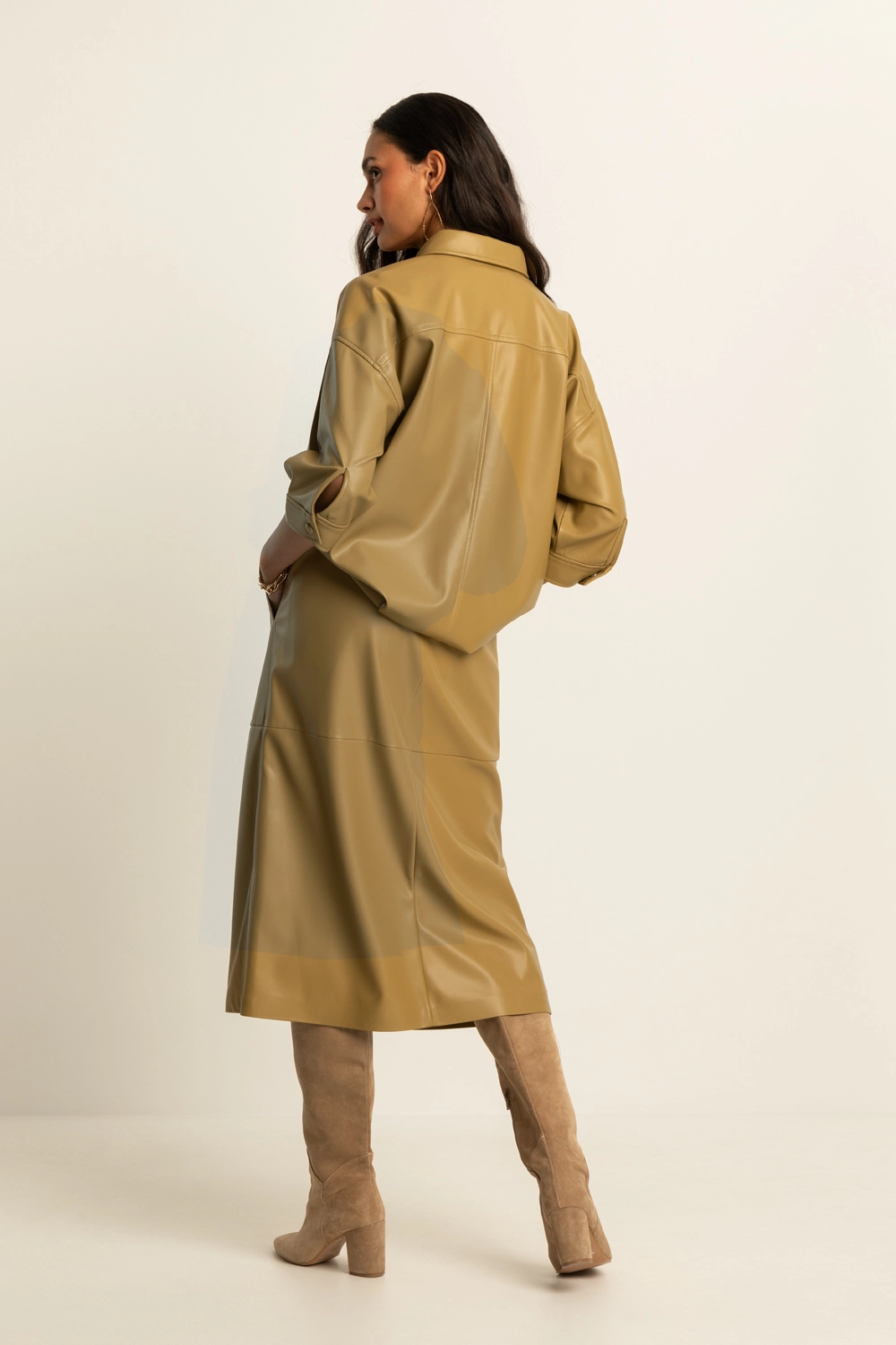 Midi-rok – soepele leatherlook met een zachte, luxe uitstraling. Recht vallend model met een comfortabele elastische tailleband die mooi aansluit. De gladde finish en subtiele belijning geven deze rok een moderne, vrouwelijke look die moeiteloos meegaat van dag naar avond. Combineer met een knit en laarzen voor een stijlvolle look.
