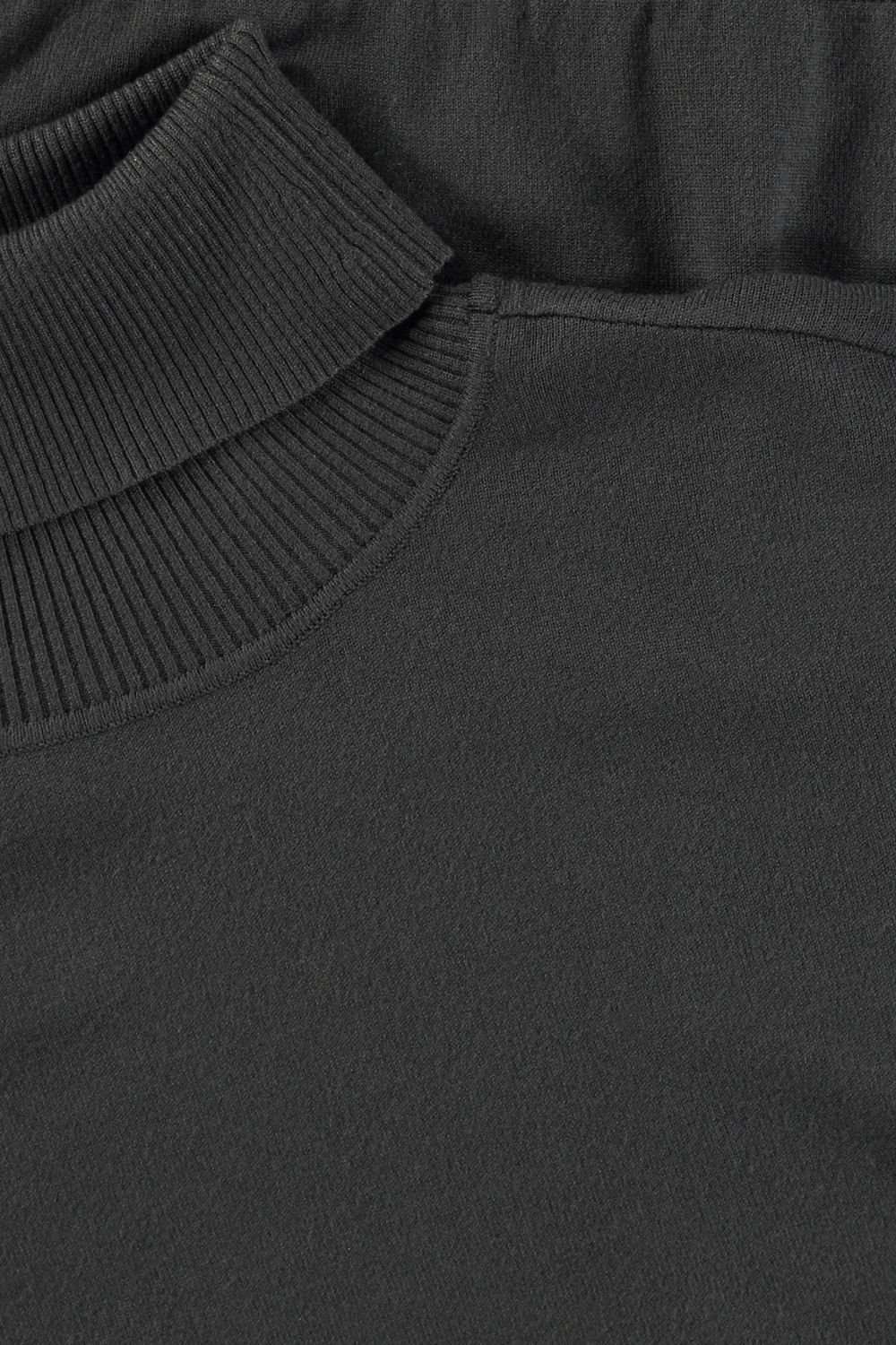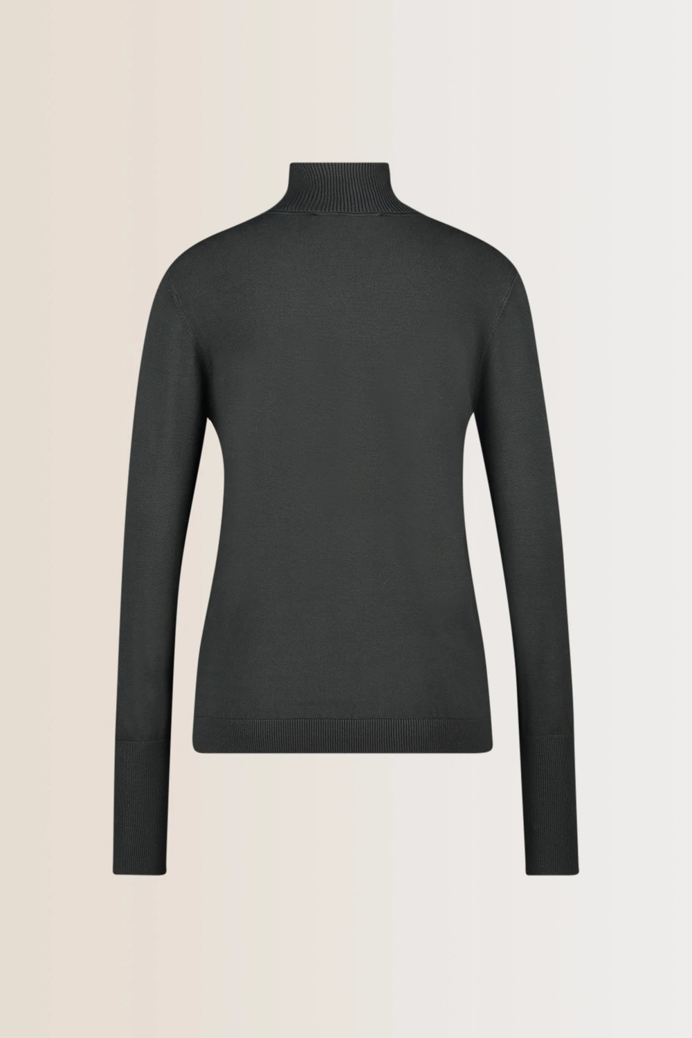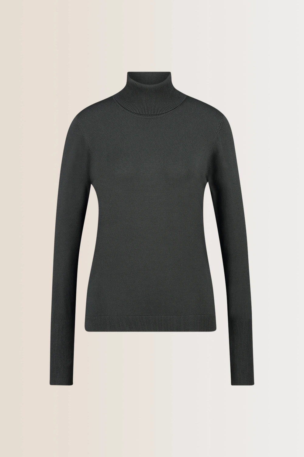 Fijngebreide donkergrijze coltrui – viscosemix. Licht aangesloten pasvorm, omgeslagen col, lange slanke mouwen. Zachte viscosemix, blijft lang mooi. Een onmisbare winterbasic die je overal op en/of onder draagt. Tip: zorg dat je al je lievelingskleuren in de kast hebt en je grijpt nooit meer mis.