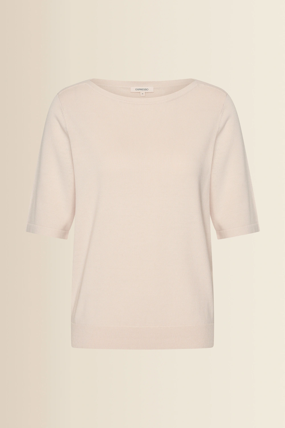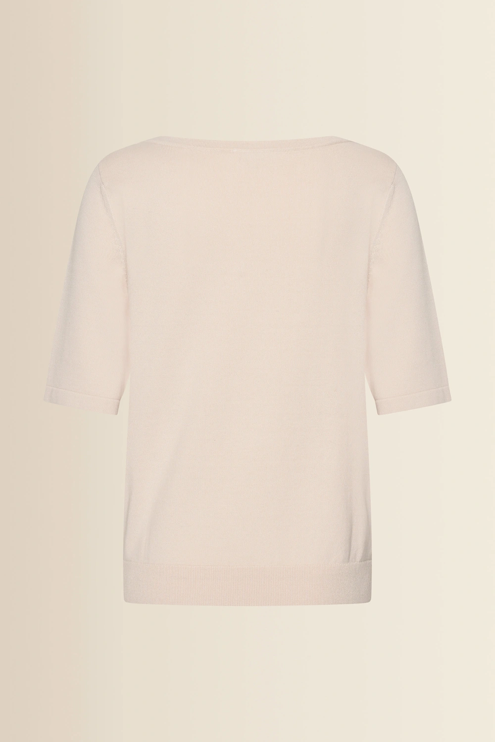 Fijngebreide trui – zachte, comfortabele knit met een cleane en vrouwelijke uitstraling. De semi-fitted pasvorm valt mooi langs het lichaam, terwijl de wijde ronde hals en korte mouwen zorgen voor een frisse, moderne look. Fijngebreid en soepel, ideaal om het hele seizoen door te dragen. Een tijdloze essential die makkelijk combineert.