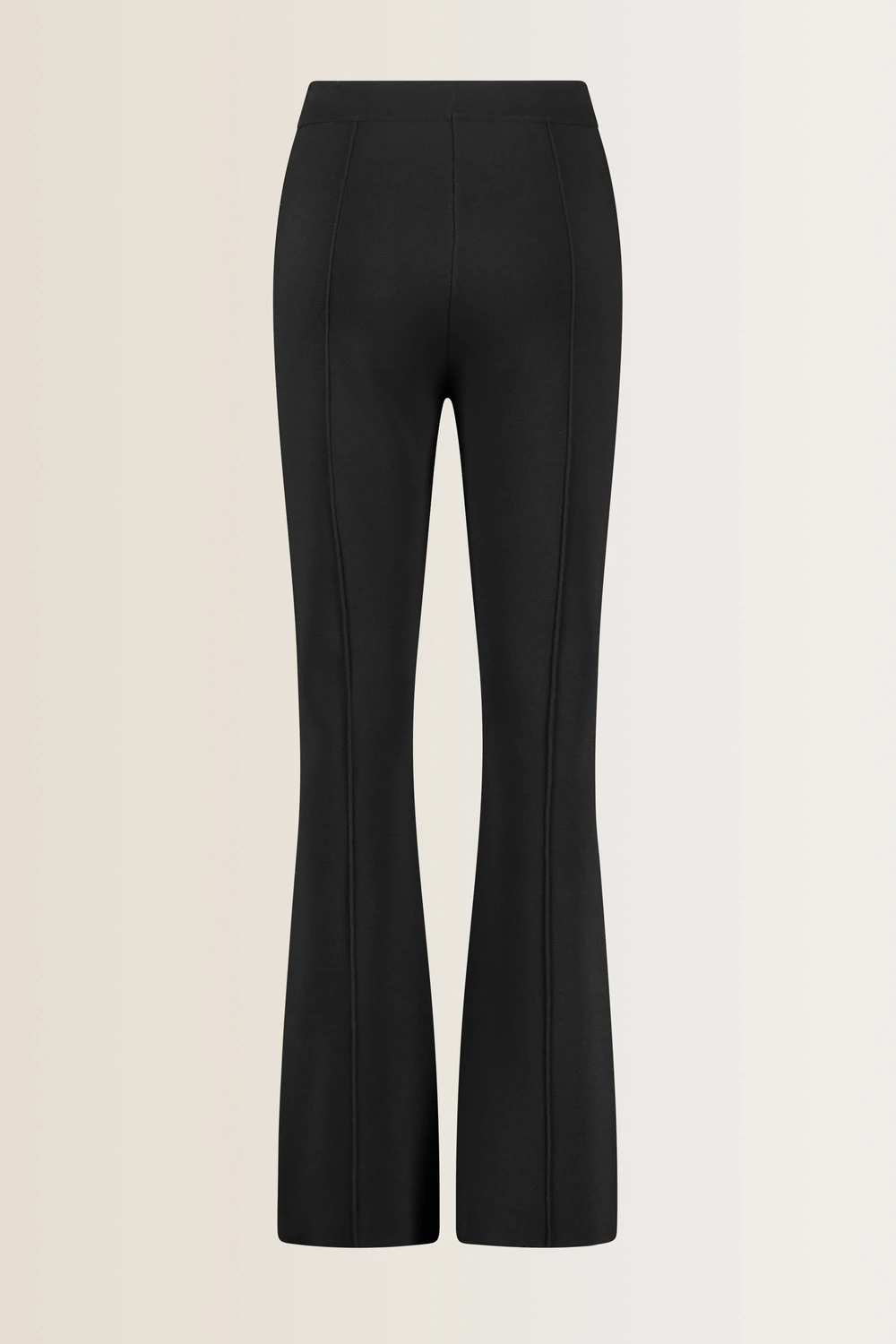 Gebreide flared broek – stretchviscose. Valt glad rond taille en heupen, flared vanaf de knie. Glad, licht glanzend crêpegaren. Stevig ribbreisel, ‘tekent’ niet. Tip: stel een veelzijdige co-ord set samen met de bijpassende tuniektop, rok en gilet.