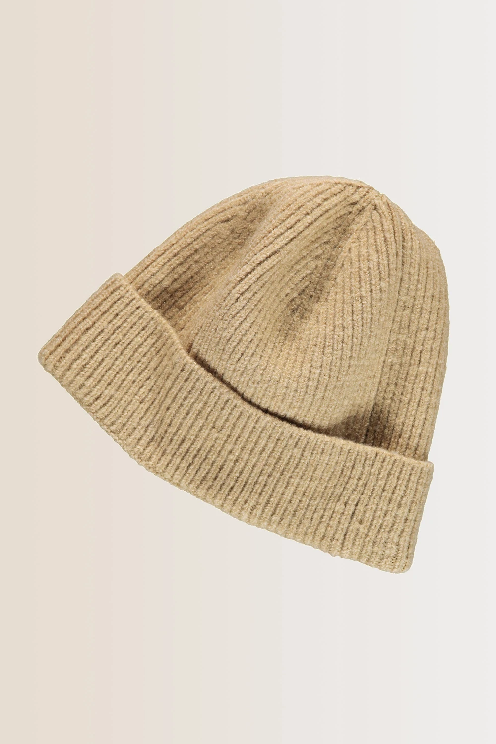 Kitkleurige muts – ribgebreid. Dit beanie-model met omgeslagen rand is de finishing touch van al je winterlooks! Tip: er is ook een bijpassende shawl. Draag ze als set of los van elkaar.