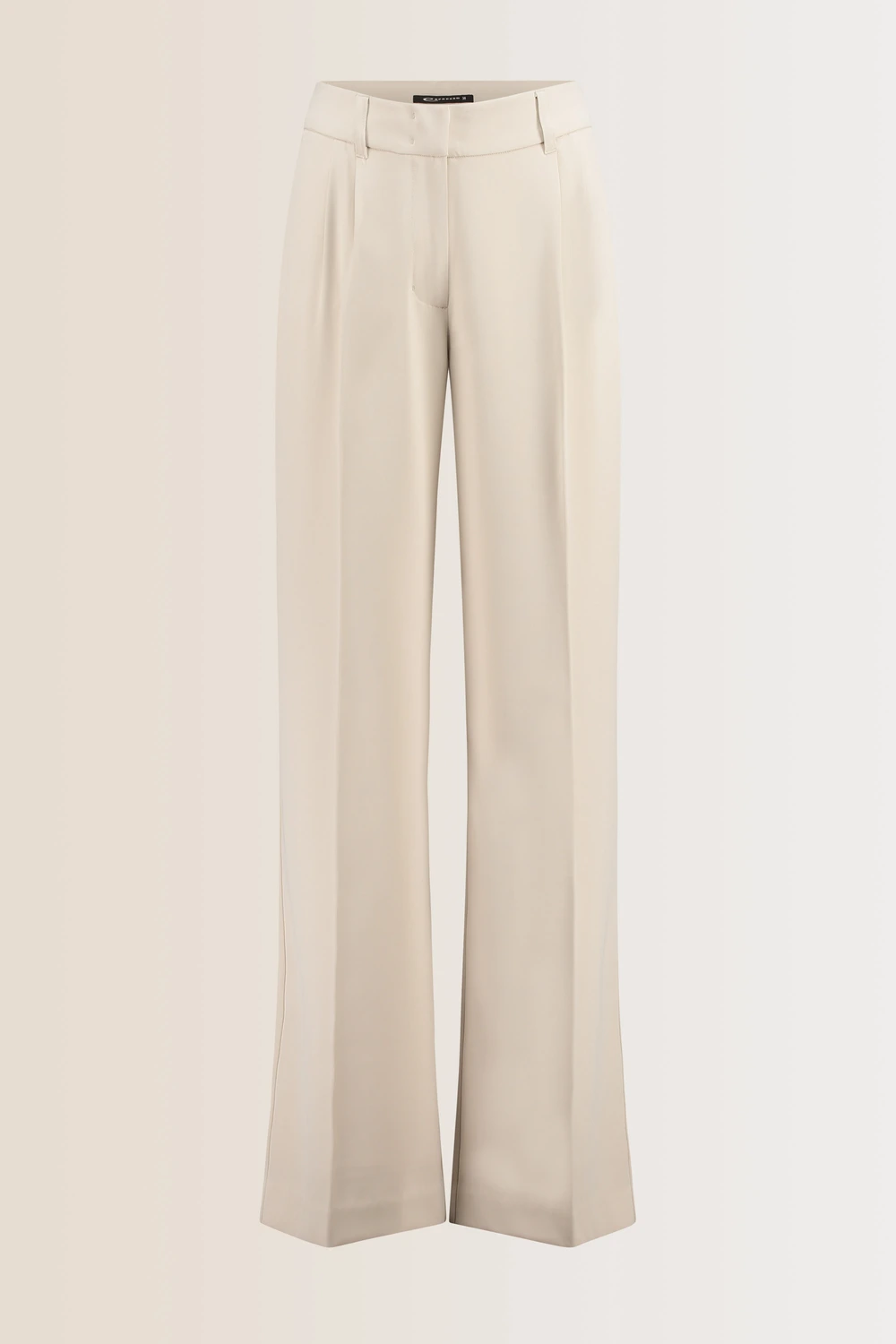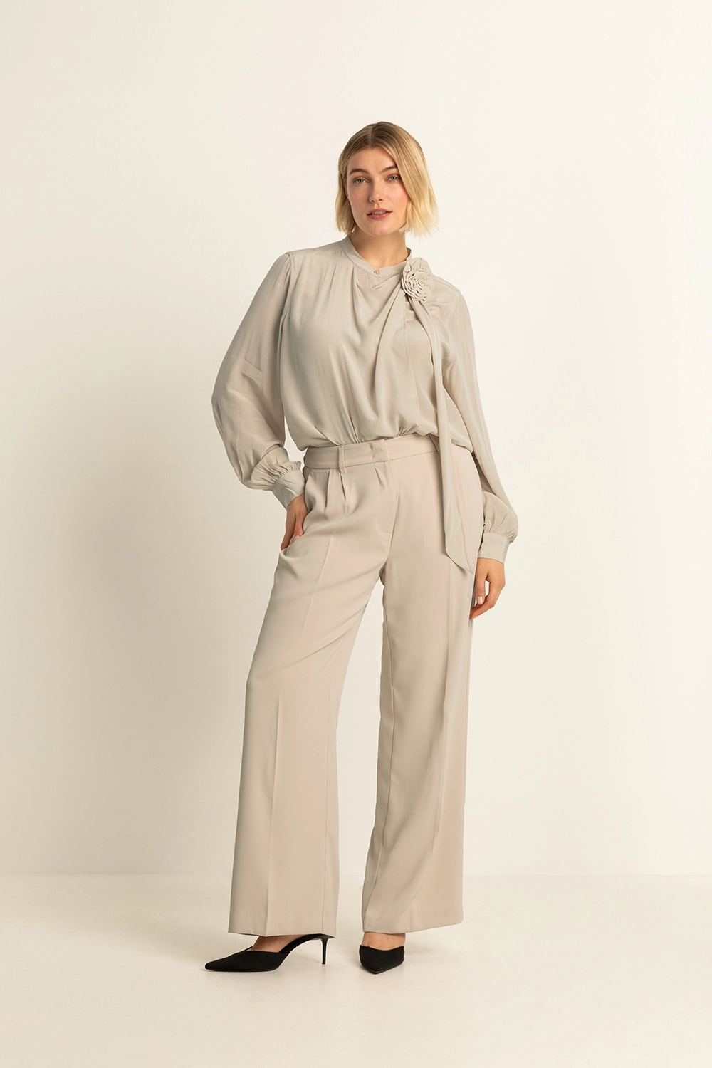 Kit kleurige broek – winterse polyester/elastaan mix. Effen & straight, ritssluiting, lange broekspijpen. Luxe en comfortabel, met een subtiele glans die elke outfit naar een hoger niveau tilt. Perfect voor de koude maanden: stijlvol en warm tegelijk. Tip: combineer met een elegante blouse voor een chique look.