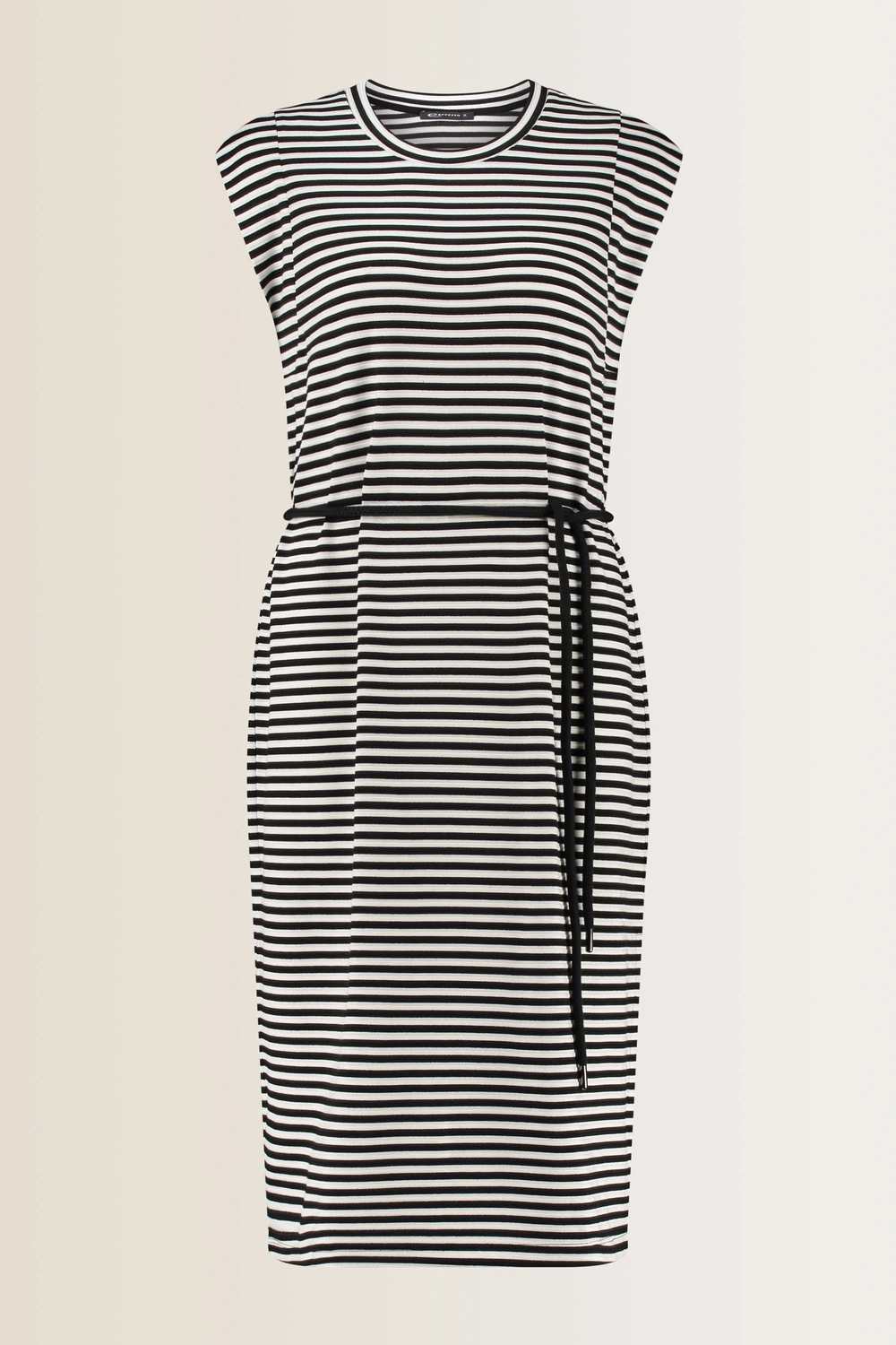 Deze prachtige jurk met gestreepte print is de perfecte jurk voor in de zomer. De luxe kwaliteit van 100% katoen zorgt ervoor dat dit item heerlijk luchtig draagt, maar ook de perfecte bescherming biedt. Het ceintuur op de taille geeft zorgt ervoor dat er een onvergetelijk silhouette ontstaat.