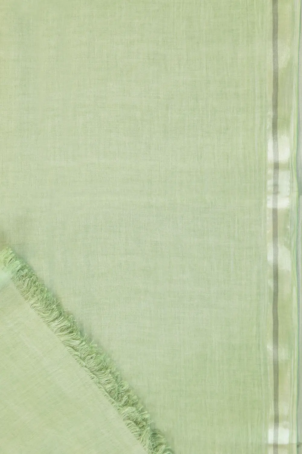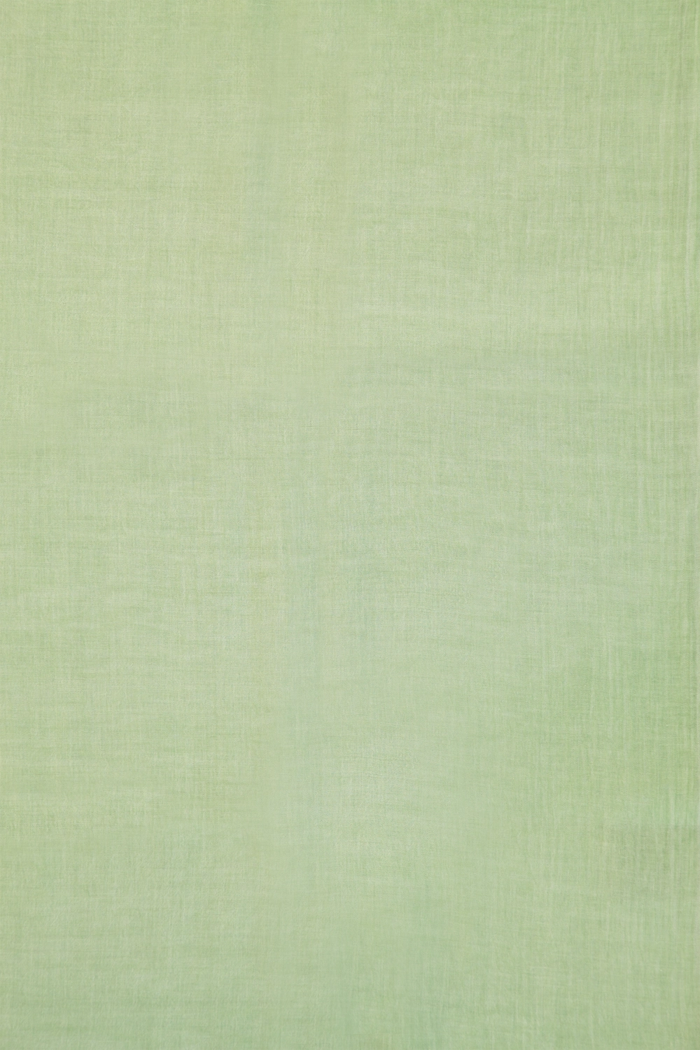 Lichtgroene shawl – luchtige kwaliteit, semi-transparant met fijne franjes aan de uiteinden. De subtiele glans en het ton-sur-ton streepaccent langs de rand geven deze sjaal een verfijnde touch. Een elegante finishing touch die elke outfit net dat beetje extra geeft.