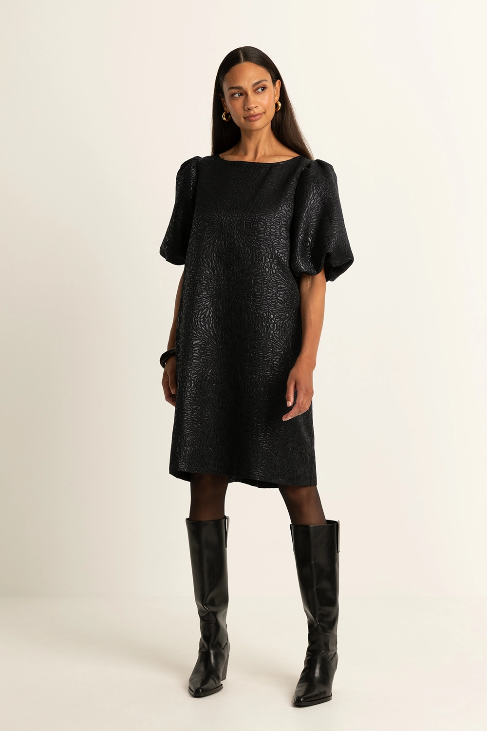 Jurk Jacquard jurk met pofmouwen EX32-251010