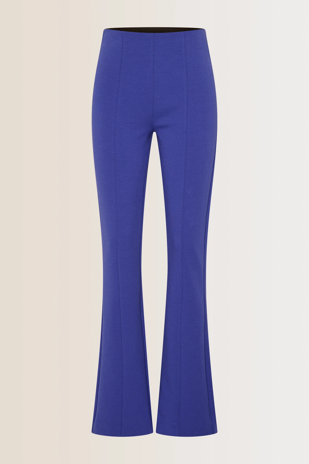Kobaltblauwe broek – winterse katoenmix. Lang & high waisted, flared pijpen. Comfortabele stretch door de mix van katoen, polyester en elastaan. De perfecte keuze voor een stijlvolle winterlook: combineer met een warme trui of een elegante blouse. Tip: de flared pasvorm accentueert je silhouet prachtig en is ideaal te dragen met hakken voor een extra lengte-effect.