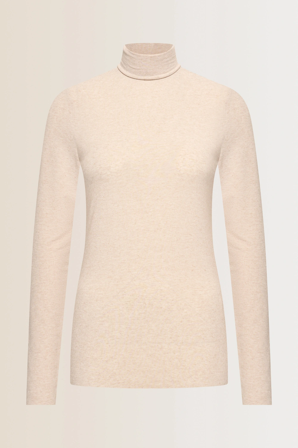 Beige coltrui – zachte, fijngebreide linnenblend. Aangesloten model met lange mouwen en een klassieke col. De lichte, neutrale kleur maakt dit een veelzijdige basic die je moeiteloos kunt combineren, zowel als solo-item of als laagje onder een blazer, vest of jurk.