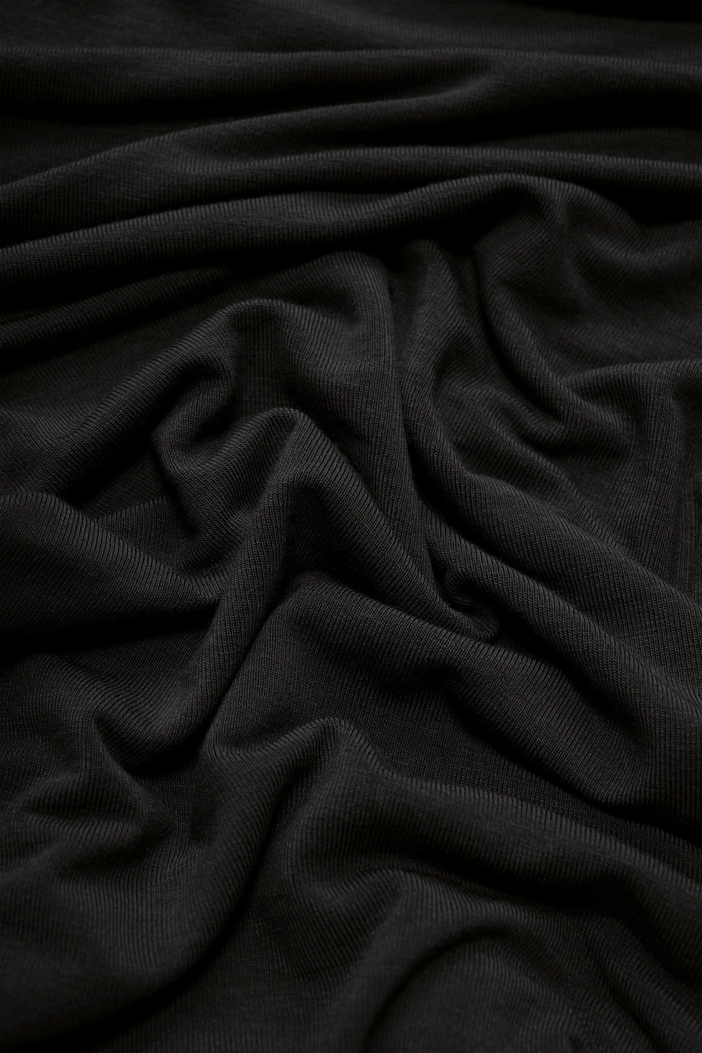 Zwarte coltrui – viscosemix met stretch. Fijn en glad gebreid, met een aangesloten pasvorm in een semi-sheer kwaliteit die soepel om het lichaam valt.  Een perfecte basis voor stijlvolle laagjeslooks in het najaar.