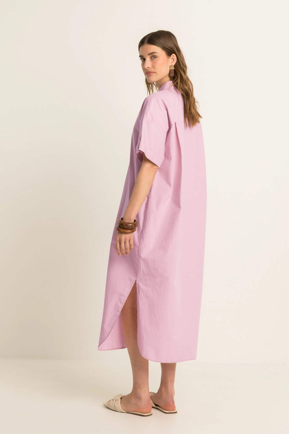 Roze blousejurk – soepele katoenkwaliteit met een lichte, frisse uitstraling. Losvallend en vrouwelijk, met een strikceintuur die de taille subtiel accentueert. De doorknoopsluiting en klassieke kraag geven de jurk een verzorgde look, terwijl de luchtige stof zorgt voor optimaal draagcomfort op warme dagen. Een veelzijdig item dat je moeiteloos draagt van casual momenten tot een meer geklede setting.