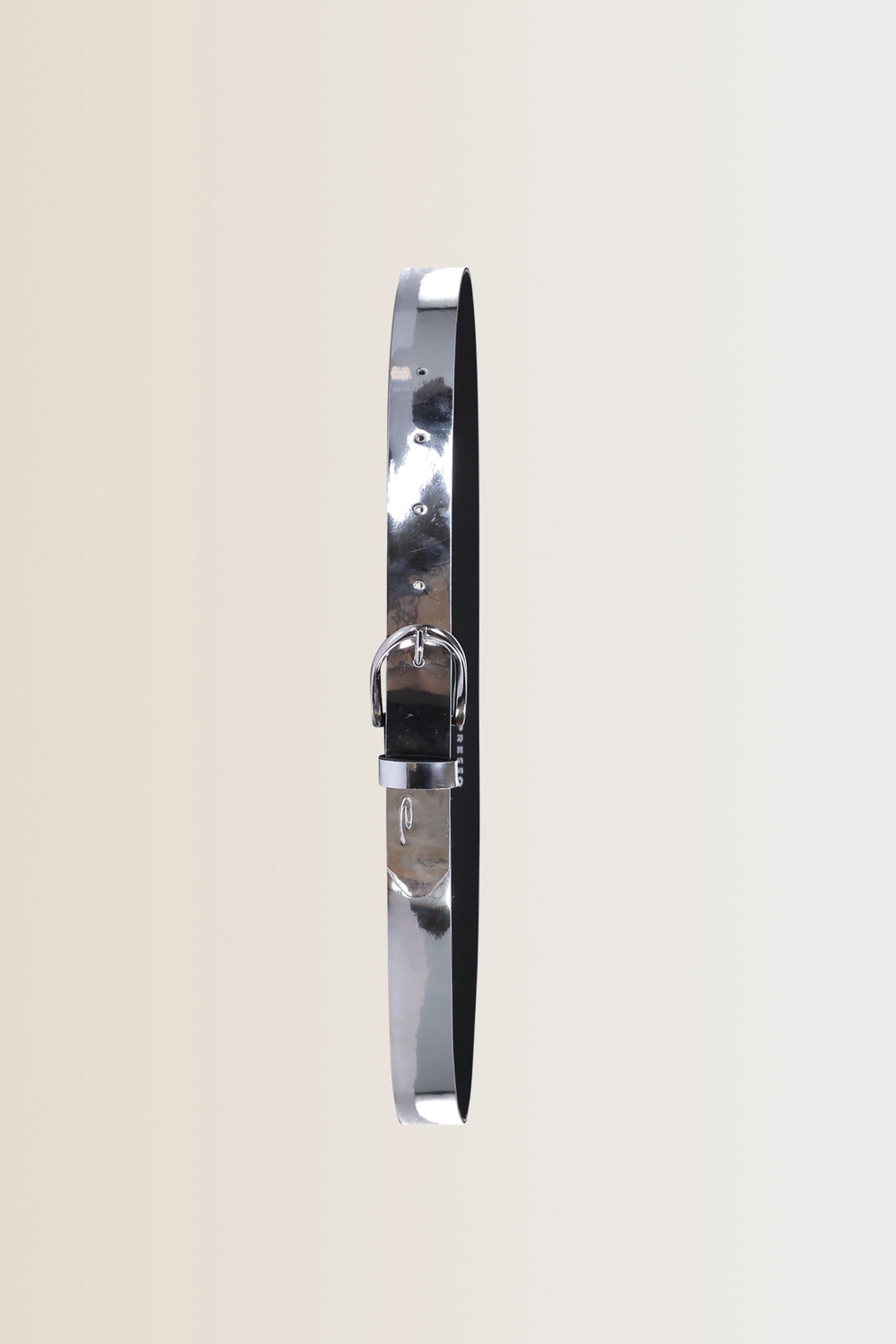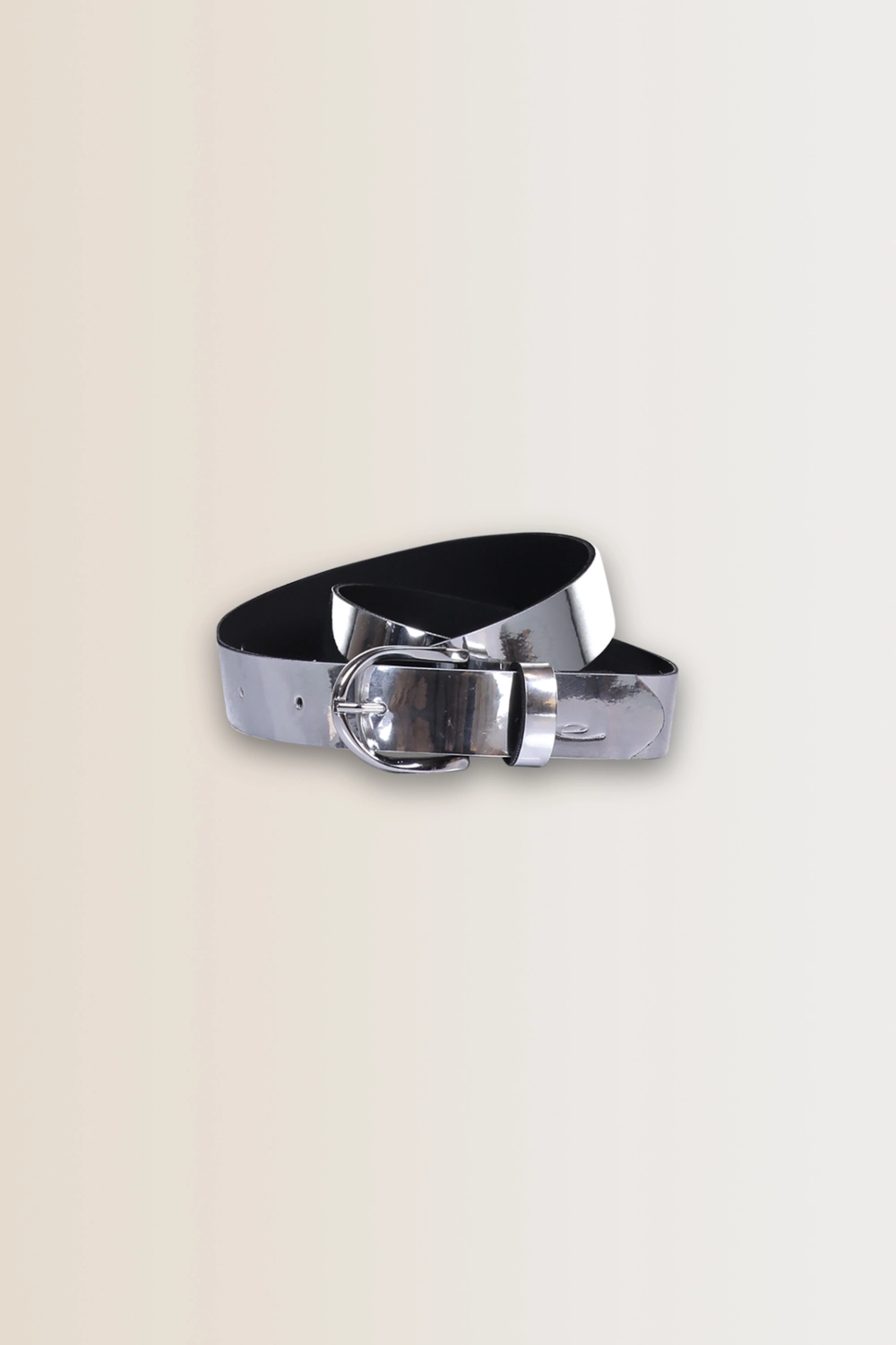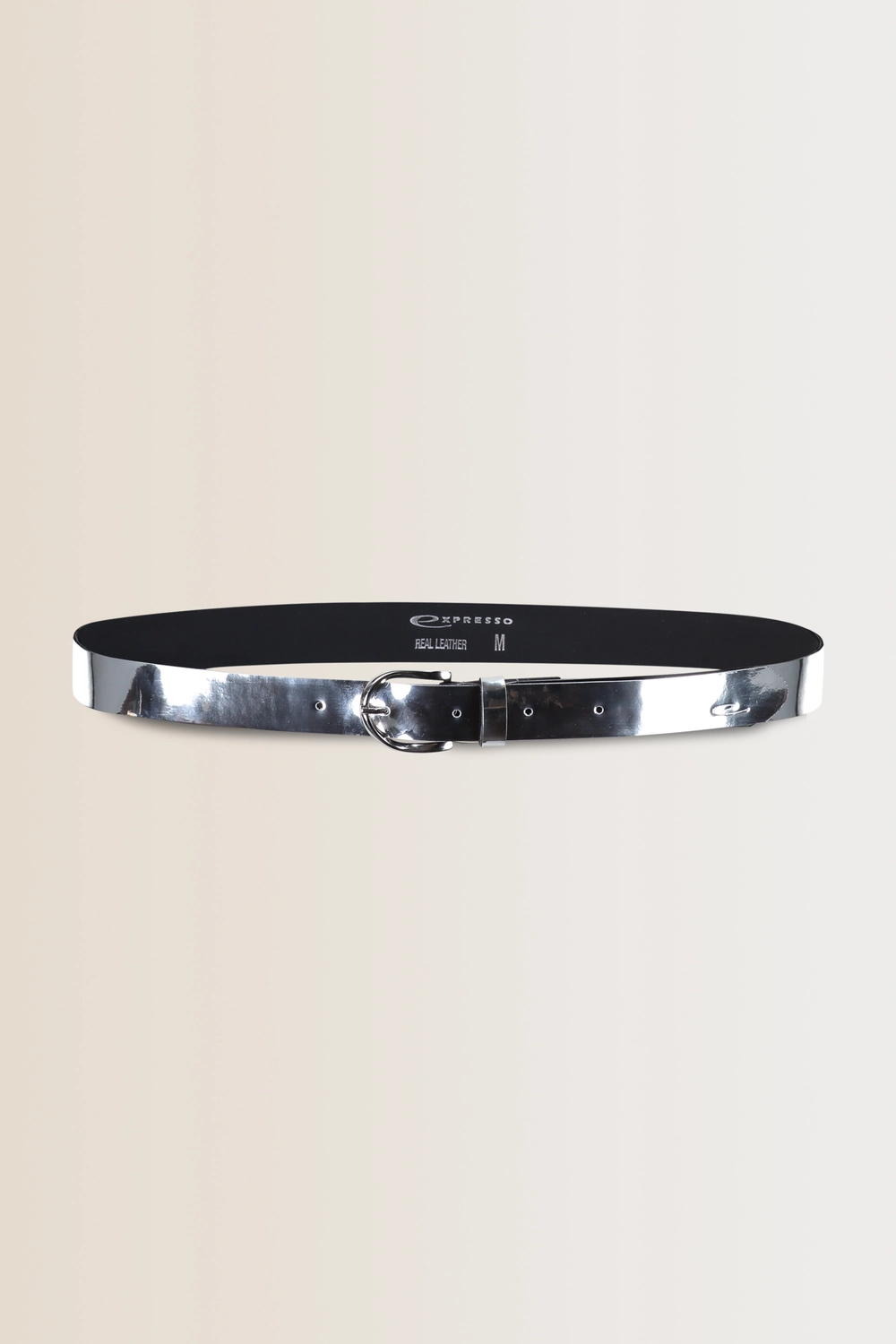 Ieren riem – 100% echt leer. Modern & stijlvol, met een glans die verandert afhankelijk van de lichtinval. De zilverkleurige gesp voegt een tijdloze finishing touch toe. Perfect voor een vleugje eigentijdse elegantie in je outfit. Iriserend leer Zilverkleurige metalen gesp