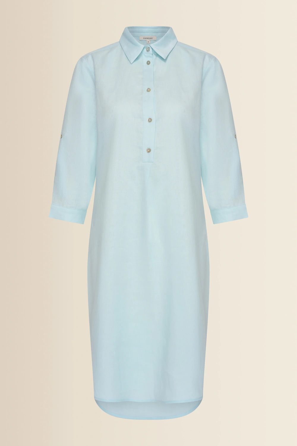 Blauwe linnen jurk – linnen met een luchtige, natuurlijke structuur. Relaxed fit, klassieke kraag en een knoopsluiting aan de voorkant. De rechte, losvallende pasvorm geeft deze jurk een moderne en moeiteloze uitstraling, terwijl de oprolbare mouwen met knoopdetail zorgen voor een casual twist. Fris, vrouwelijk en comfortabel.