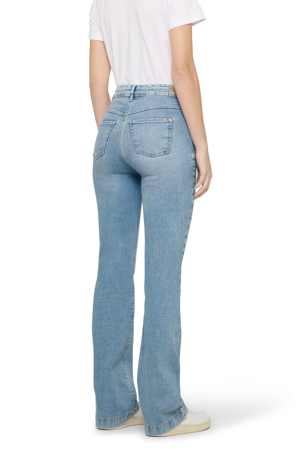 Lichtblauwe DREAM BOOT jeans van MAC – denim met een comfortabele stretch met shaping effect. Slank op de heup en het bovenbeen, met een elegante flare vanaf de knie voor een vrouwelijk silhouet dat je benen optisch verlengt. De subtiele fading en verfijnde afwerking geven deze jeans een moderne, zelfverzekerde uitstraling.