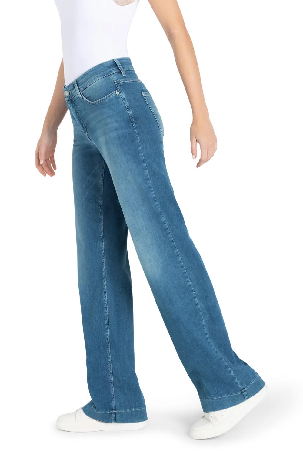 Blauwe jeans in model DREAM WIDE van MAC – Lichtgewicht soft touch denim met een zachte stretch. Slank op het bovenbeen en elegant uitlopend vanaf de knie voor dat lengende, vrouwelijke silhouet. De frisse wassing geeft een moderne, optimistische look, terwijl de comfortabele fit moeiteloos met je meebeweegt.