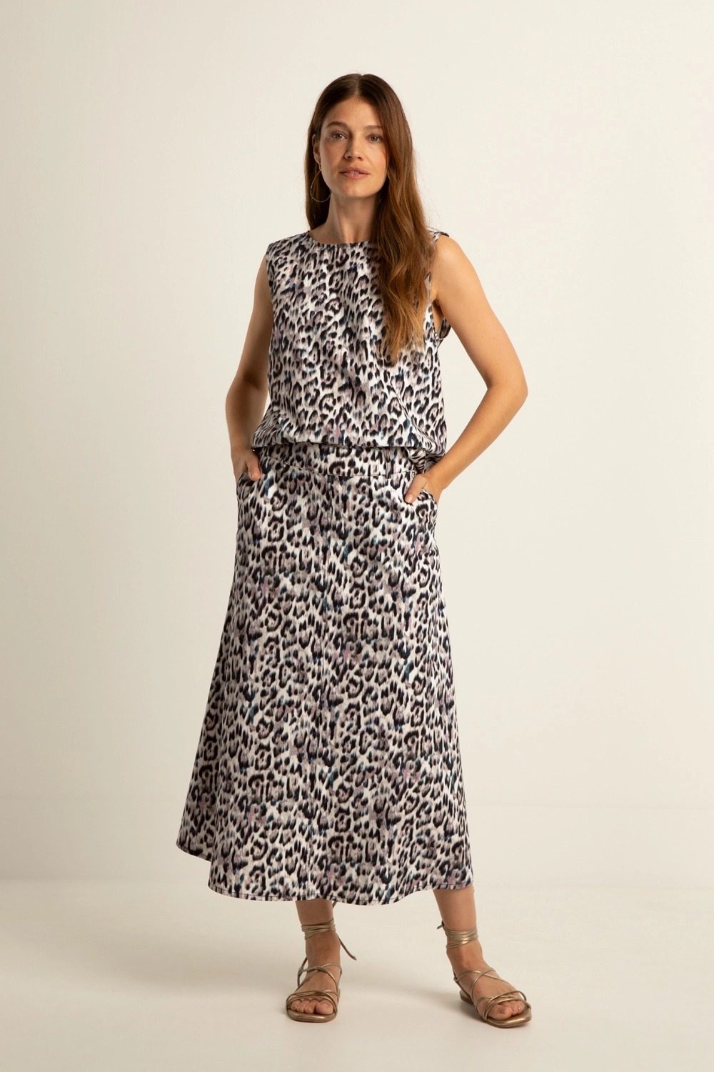 Panterprint midi rok – soepele katoenkwaliteit. Vrouwelijk vallend met een subtiele A-lijn die elegant meebeweegt bij elke stap. De verfijnde panterprint in zachte tinten geeft de rok een moderne uitstraling met net dat beetje extra karakter. Comfort en stijl komen moeiteloos samen in dit item dat je zowel casual als gekleed draagt.