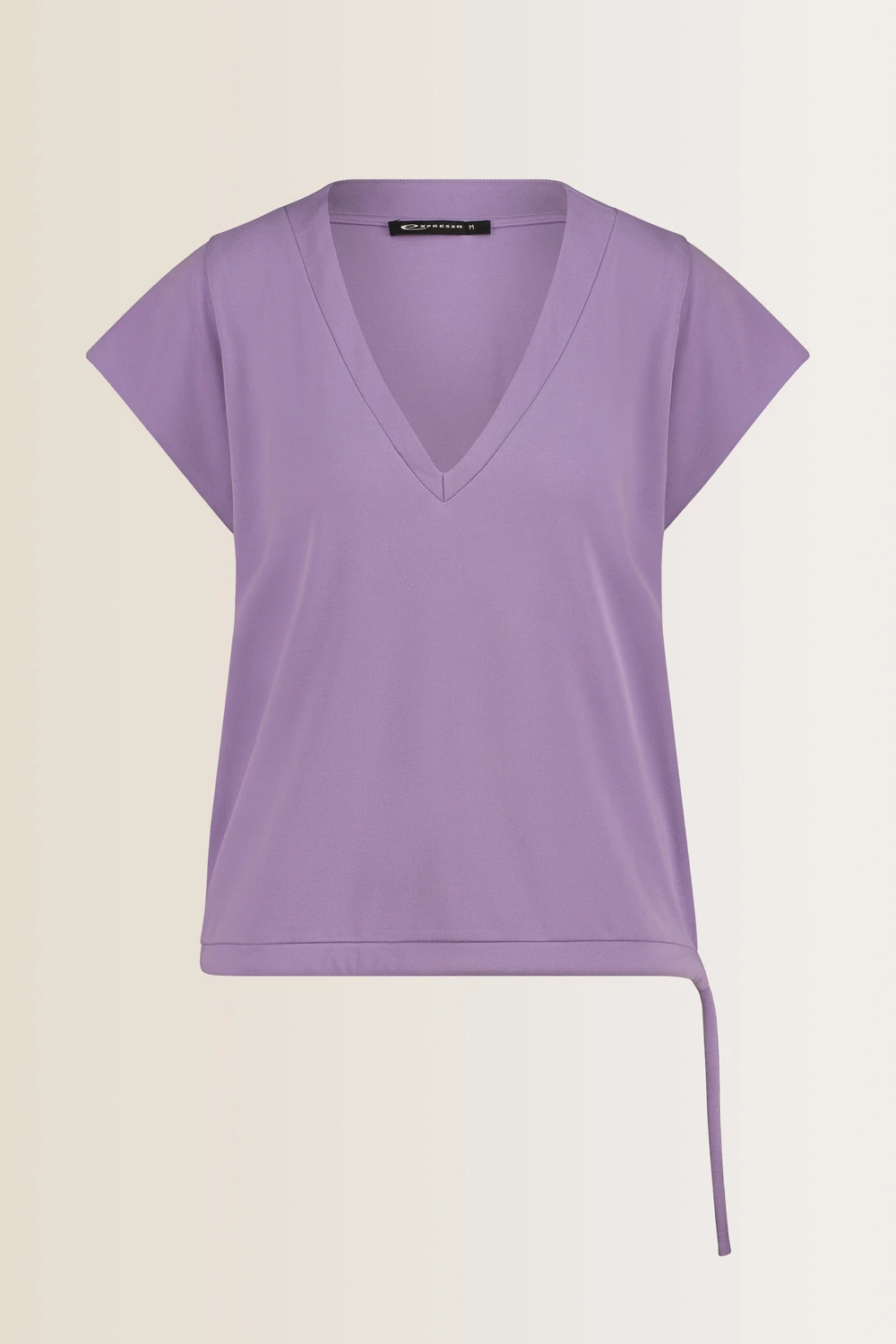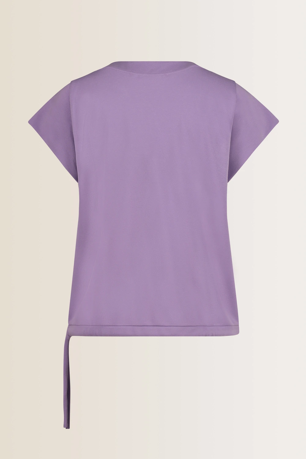 Lila sweatertop – viscosemix. Relaxte pasvorm, lage V-hals, overhangende schouders. Iets zwaarder vallende jersey, zachte peach finish. Stijlvolle athleisure wear voor een dagelijkse dosis comfort. Maak de top bloezend met de drawstring en maak je look compleet met de bijpassende trackpants.