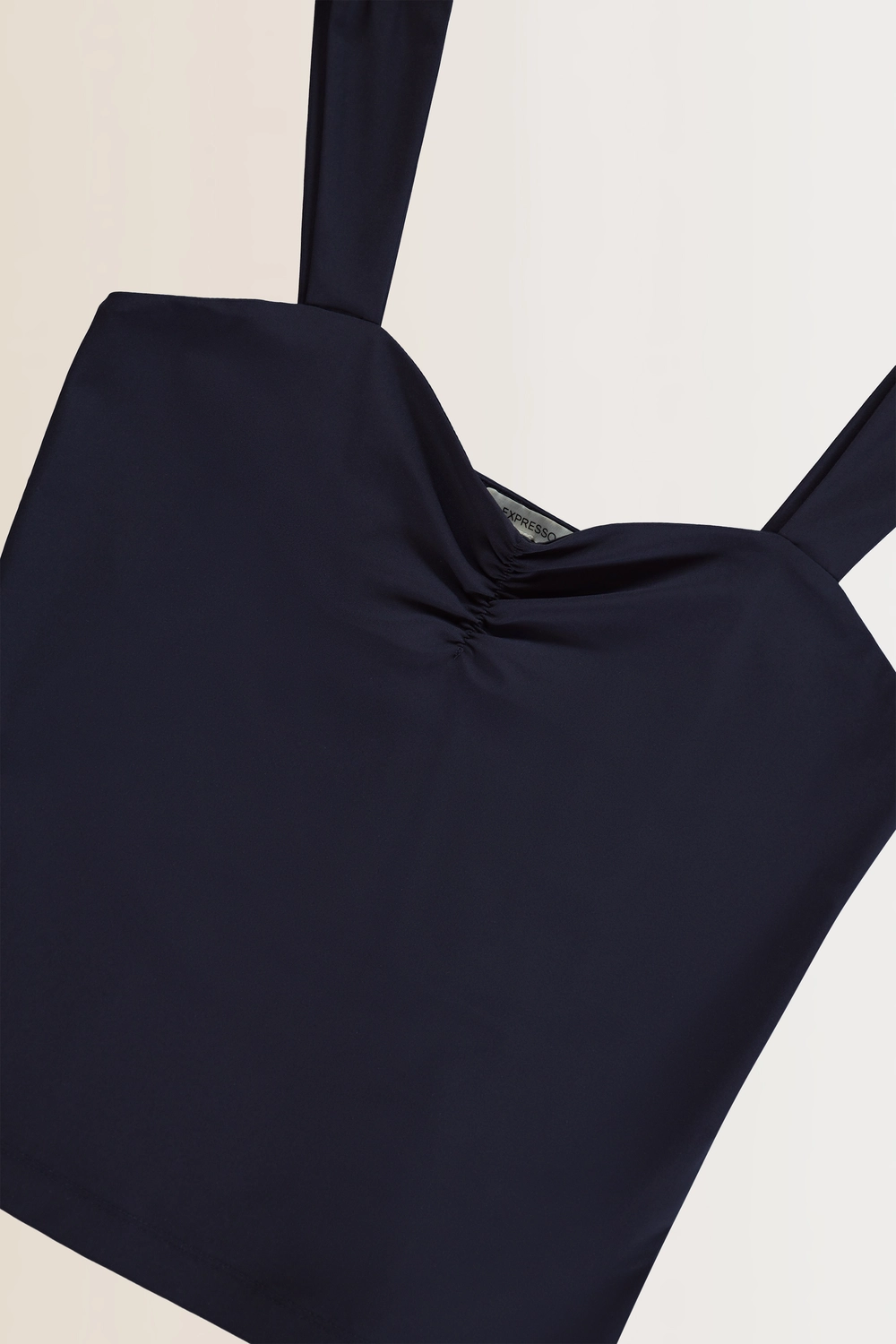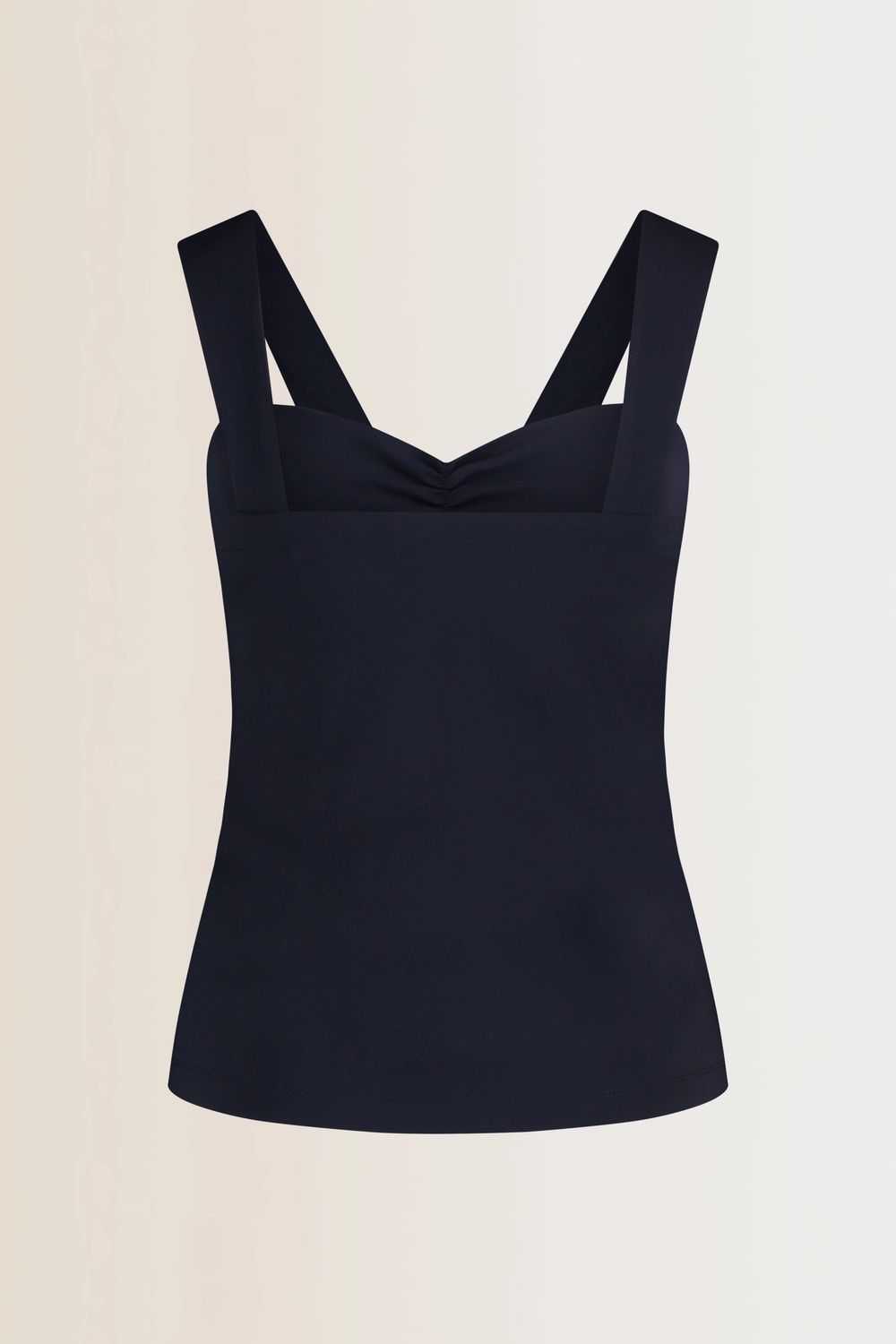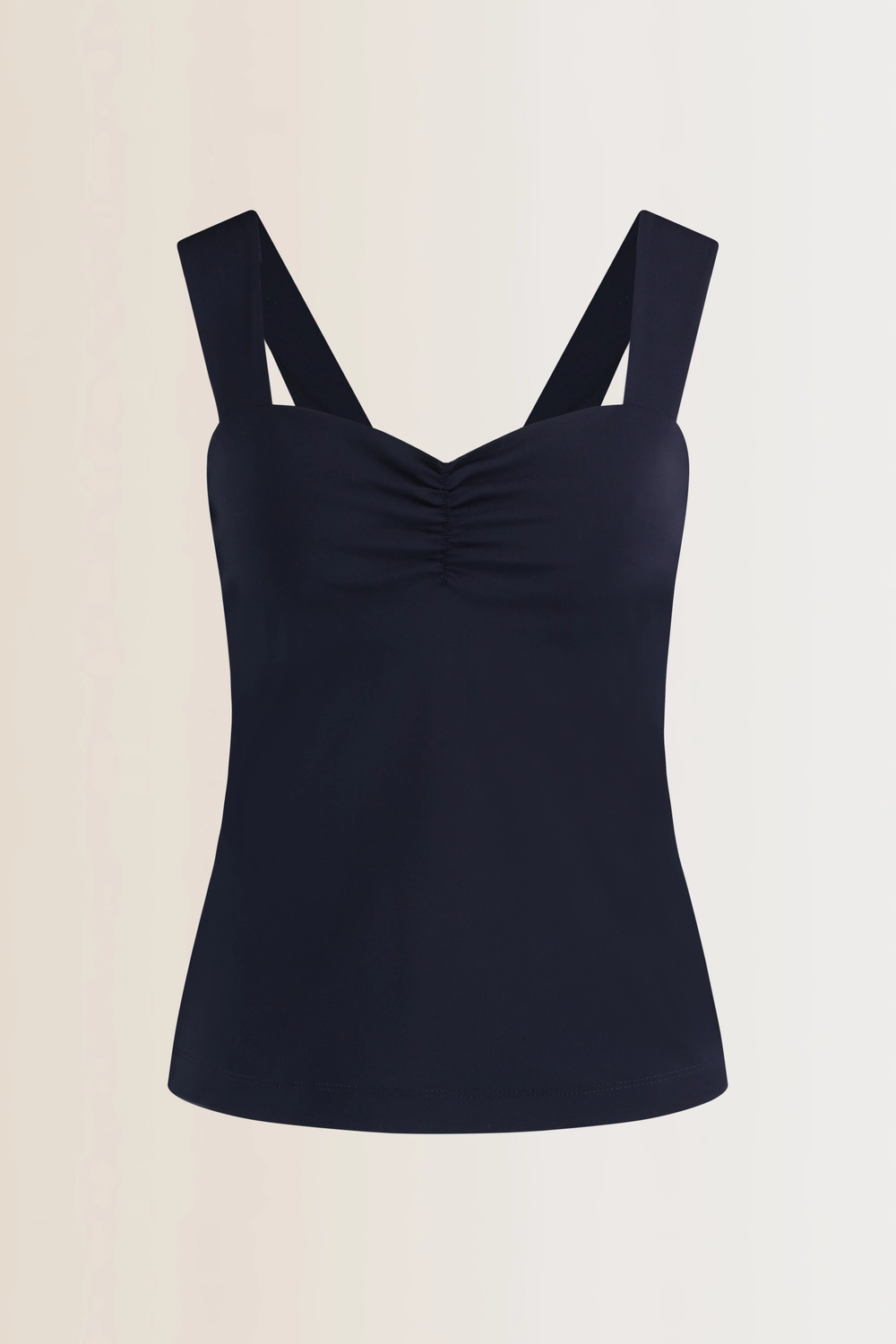Donkerblauwe top – comfortabele travelkwaliteit met een subtiele V-hals en brede schouderbanden. Het aangesloten ontwerp zorgt voor een verfijnde pasvorm die voor elke gelegenheid de perfecte keuze is.