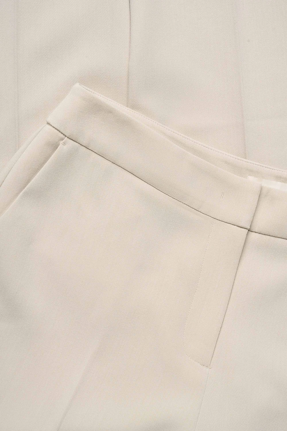 Lichtbeige pantalon – elegante pantalon met een slanke, moderne fit en een tijdloze uitstraling. De hoge taille en smalle pijpen creëren een gestroomlijnd silhouet, terwijl de soepele stof comfortabel draagt en mooi in vorm blijft. Minimalistisch en verfijnd. Een veelzijdig item dat je eindeloos combineert.
