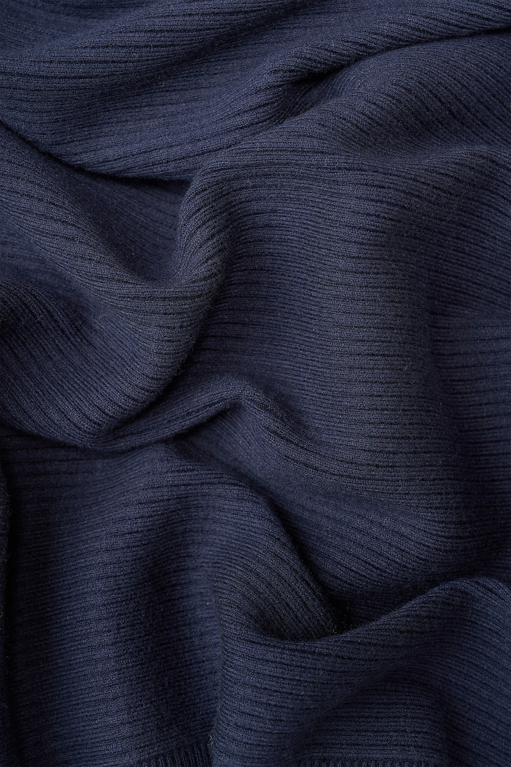 Donkerblauw ribgebreid vest – hoogwaardige viscosemix met subtiele ribstructuur. Kort model met een moderne ronde hals en een zilverkleurige ritssluiting. Dit vest combineert moeiteloos tijdloze elegantie met eigentijdse details, waardoor het een veelzijdige must-have is voor elke garderobe. Perfect voor over een blouse of t-shirt.