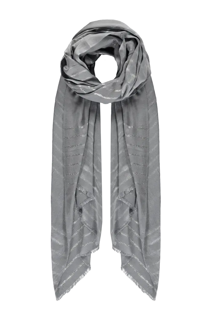 Grijze shawl met zilverkleurige glans – modalmix met lurex. Licht en luchtig, semi-transparant. Een vleugje glans maakt elke outfit chiquer. En: altijd fijn om bij de hand te hebben als je onverwachts een terrasje pakt.