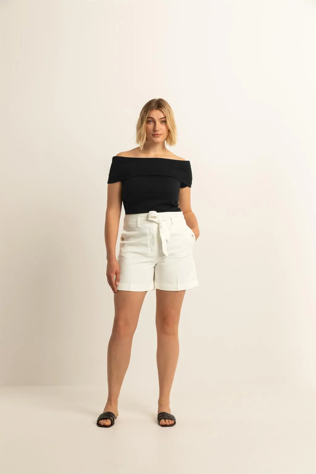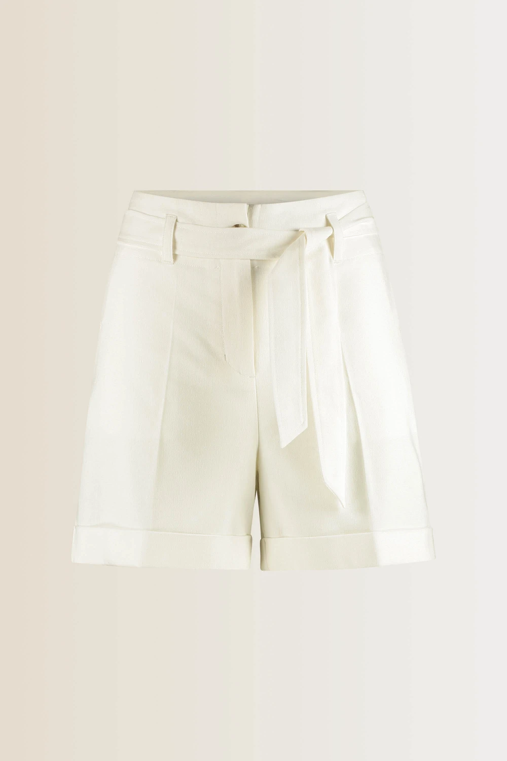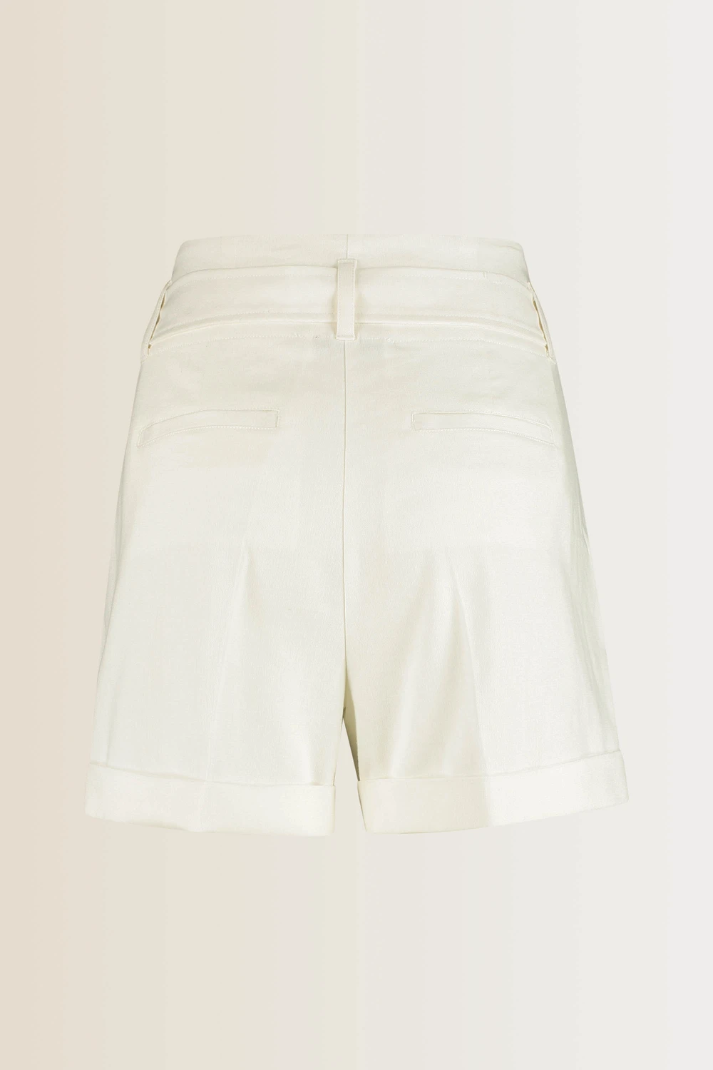 Offwhite short – blend met katoen & linnen. Hoge semi-paperbag taille met ceintuur, korte pijpen met vaste omslag, dijlengte. Lichte zomerkwaliteit met een vleugje comfortabele stretch. Stijlvolle zomershorts om eindeloos mee te combineren. Tip: style een vernieuwende city suit met het bijpassende gilet.