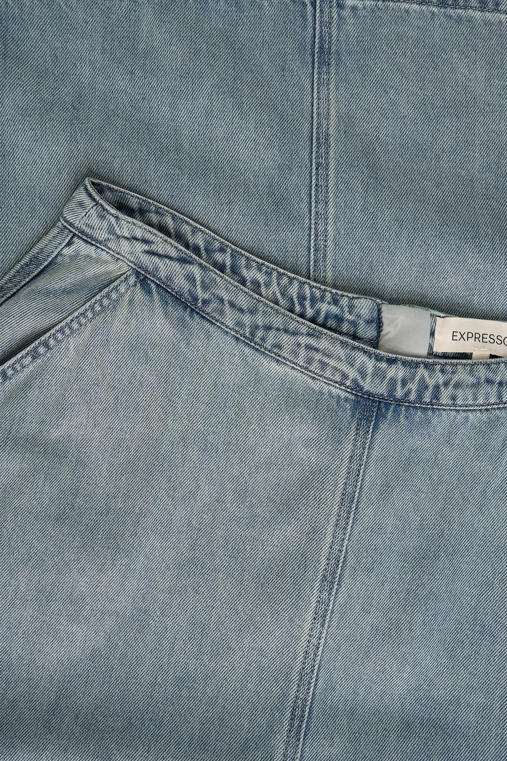 Lichtblauwe denim midi-rok – soepelvallende lyocell denim kwaliteit met een moderne A-lijn. De lichte wassing geeft een frisse, eigentijdse uitstraling, terwijl de midi-lengte zorgt voor een vrouwelijke en veelzijdige look. Een echte garderobe-essential die je eindeloos kunt combineren.