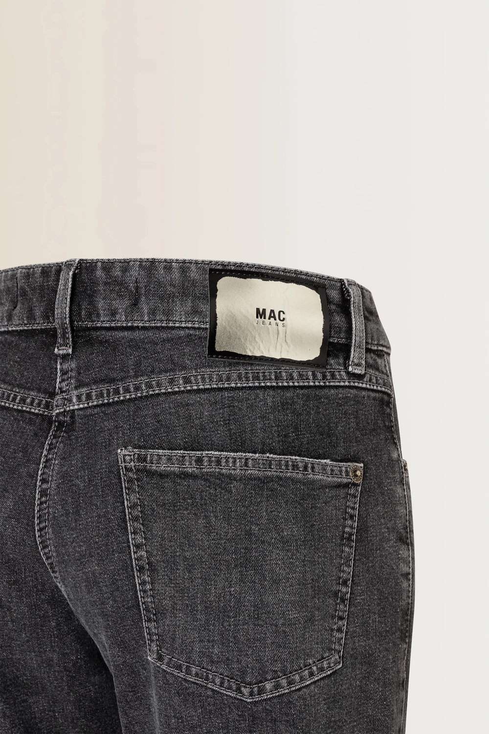 Grijze jeans van MAC – katoen met stretch. Modern straight fit met een middelhoge taille en licht vervaagde wassing voor een stoere, gedragen look. De denim voelt stevig maar comfortabel aan en beweegt soepel mee dankzij de stretch. Een veelzijdige jeans die moeiteloos aansluit bij zowel casual als geklede outfits.