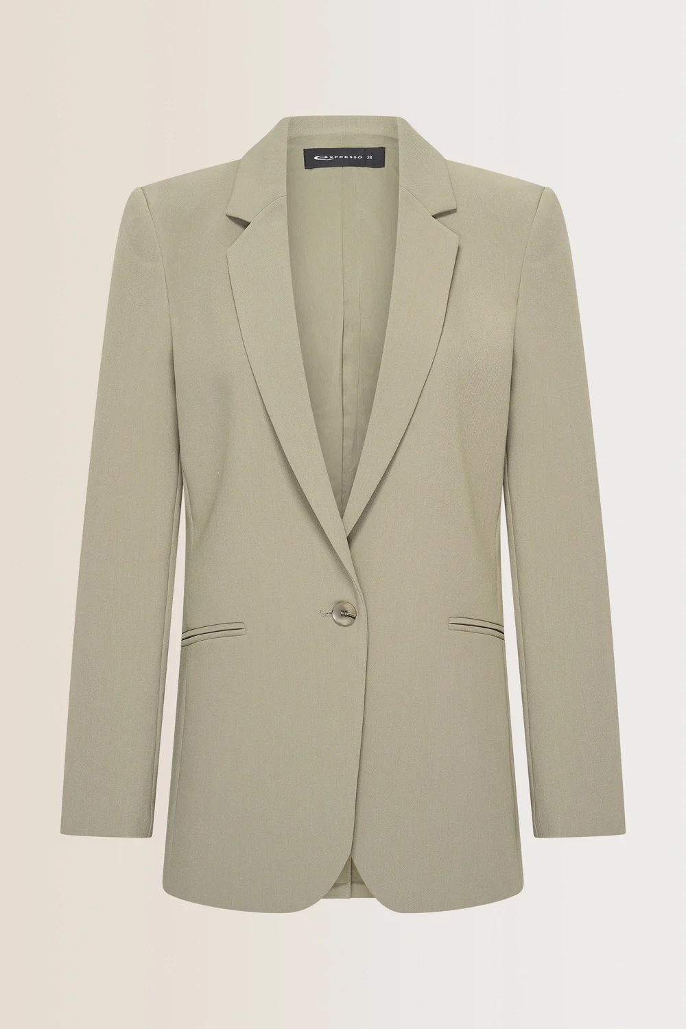 Khaki kleurige blazer – soepele stretchkwaliteit. Getailleerd, single-breasted met een knoopsluiting en klepzakken. Deze blazer voegt een vleugje moderniteit toe aan je garderobe en is dankzij de neutrale tint eindeloos te combineren. Draag ‘m casual op jeans of als compleet pak met de bijpassende pantalon.