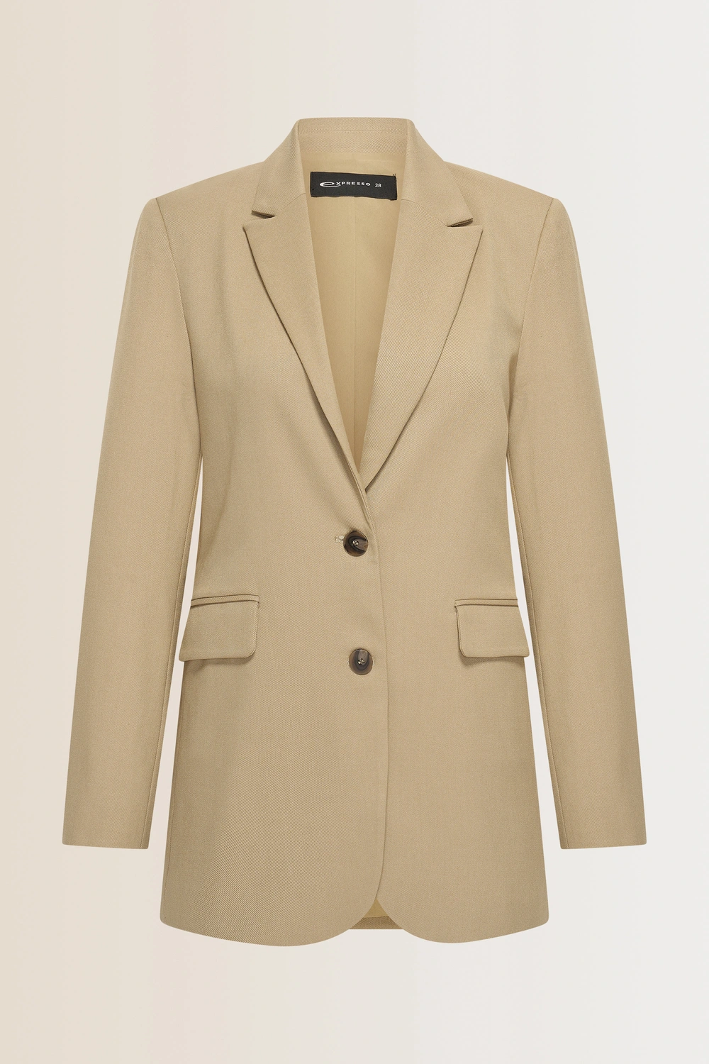 Zandkleurige blazer – viscosemix met stretch. Een klassieker met moderne elegantie. Deze getailleerde blazer heeft een subtiele glans en tijdloos silhouet met reverskraag en klepzakken. De lichte stretch zorgt voor een comfortabele fit, terwijl de diepe mosgroene tint kracht en verfijning uitstraalt.
