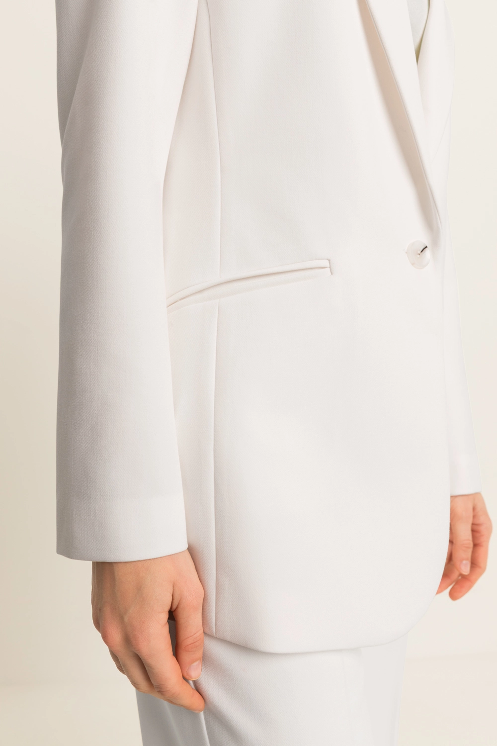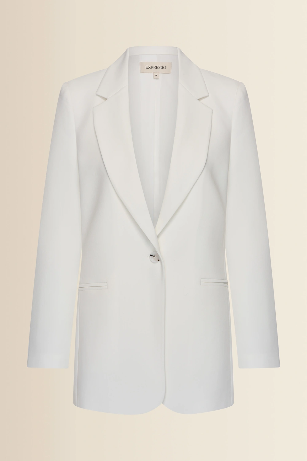 Witte blazer – Deze blazer heeft een klassiek revers en een slanke, vrouwelijke pasvorm. De enkele knoopsluiting en paspelzakken geven het ontwerp een tijdloze uitstraling, terwijl de zachte lila kleur zorgt voor een frisse, eigentijdse twist. Draag als statement piece of combineer met de bijpassende pantalon voor een krachtig, ton-sur-ton pak.