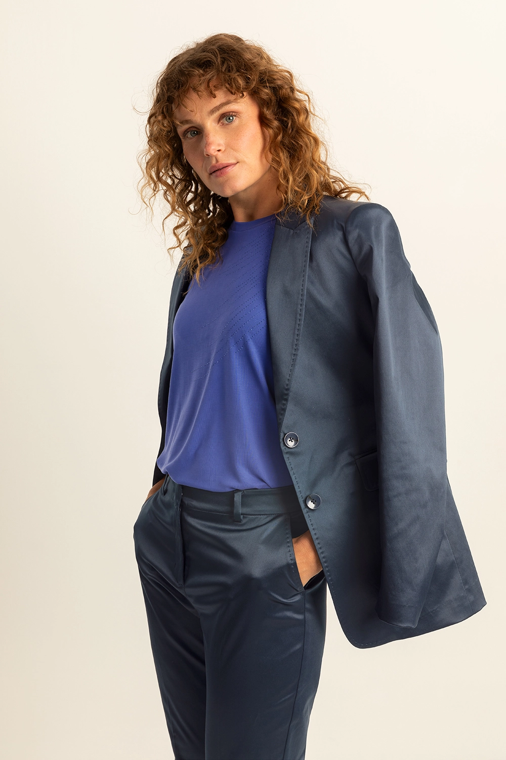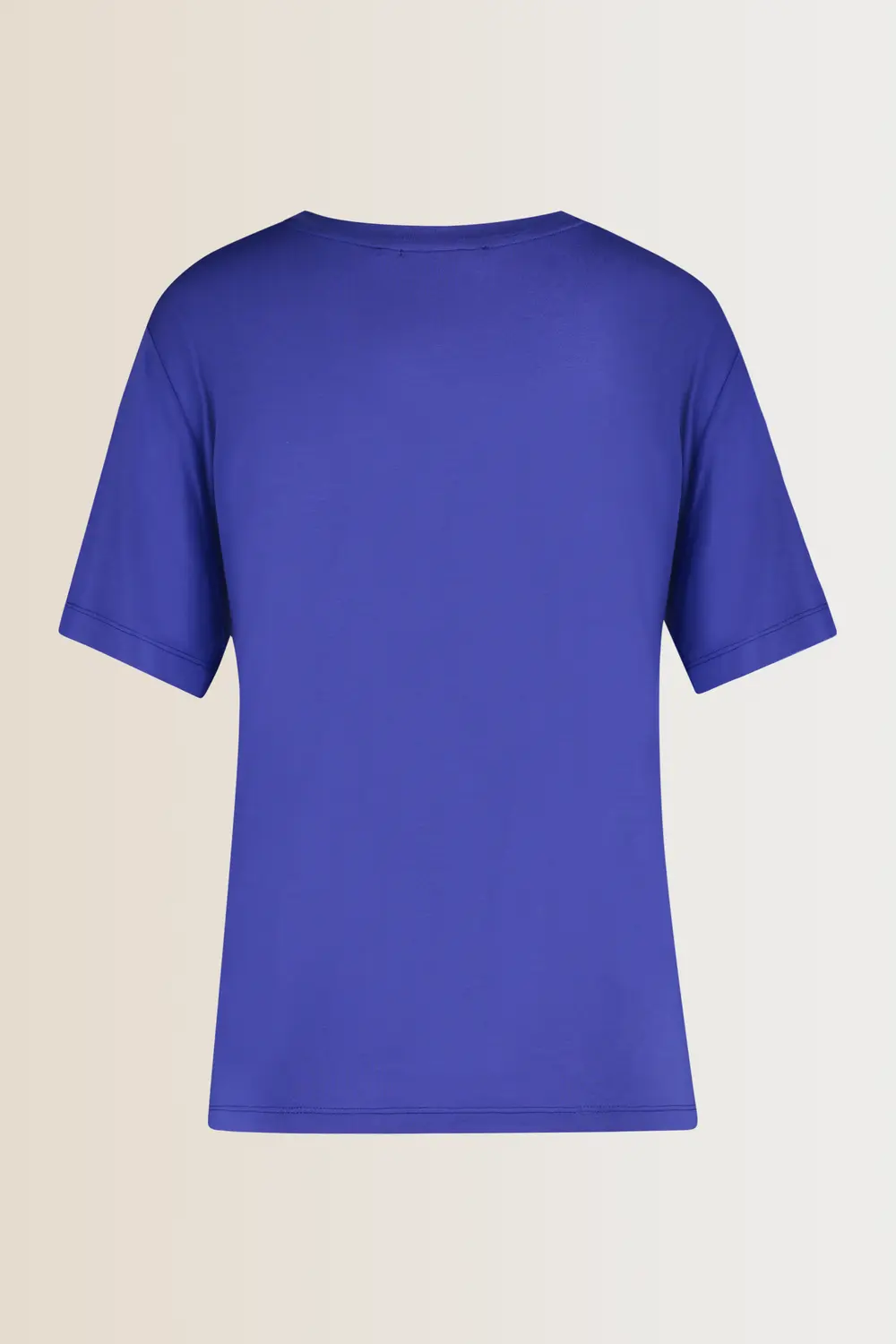 Kobaltblauw top – wintereditie in modal/polyester mix. Korte mouwen, ronde hals, subtiele pailletten. Zacht en comfortabel, perfect voor de koelere dagen. Voeg een vleugje glamour toe aan je wintergarderobe met deze veelzijdige top. Tip: combineer met een donkere jeans voor een stijlvolle, casual look.