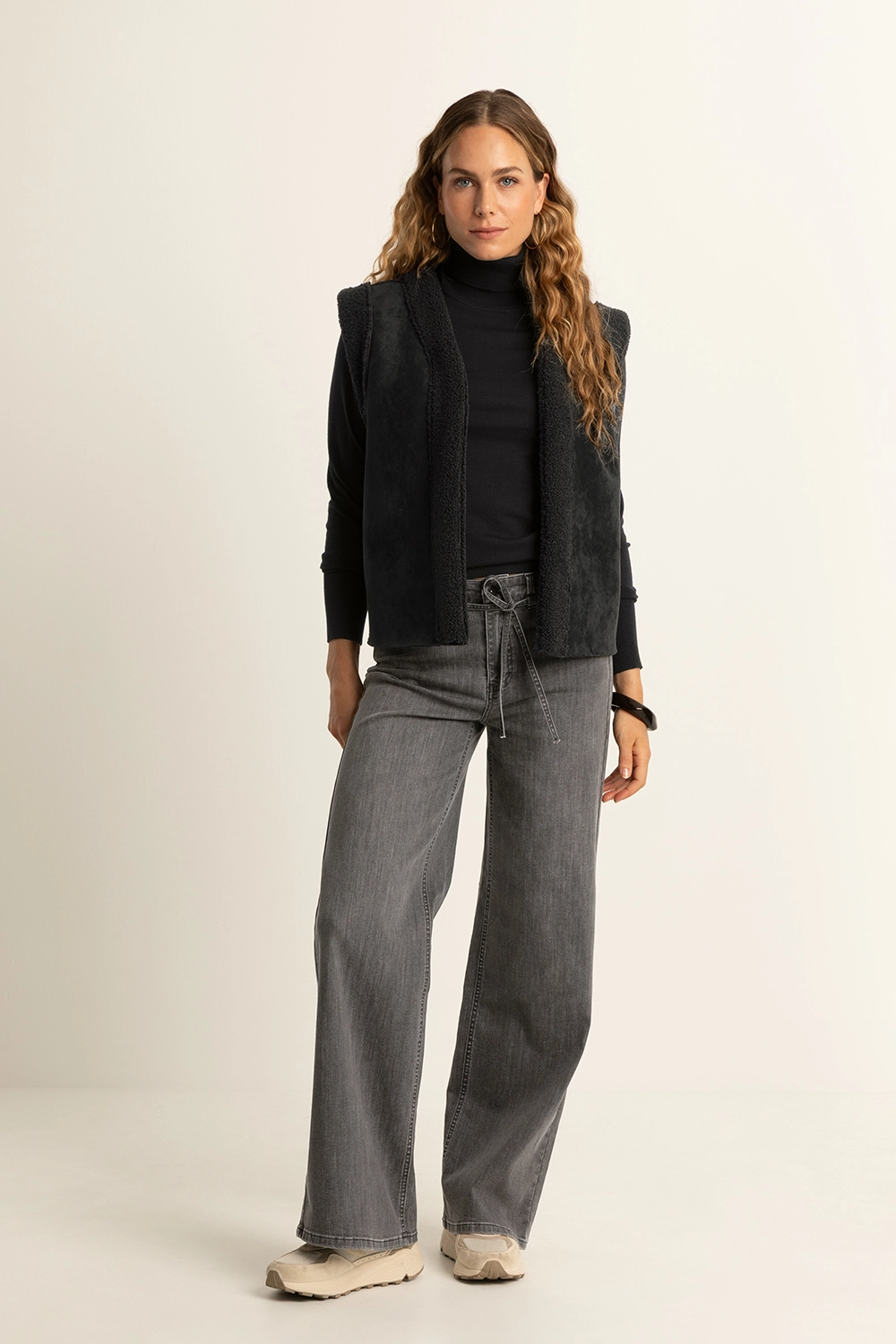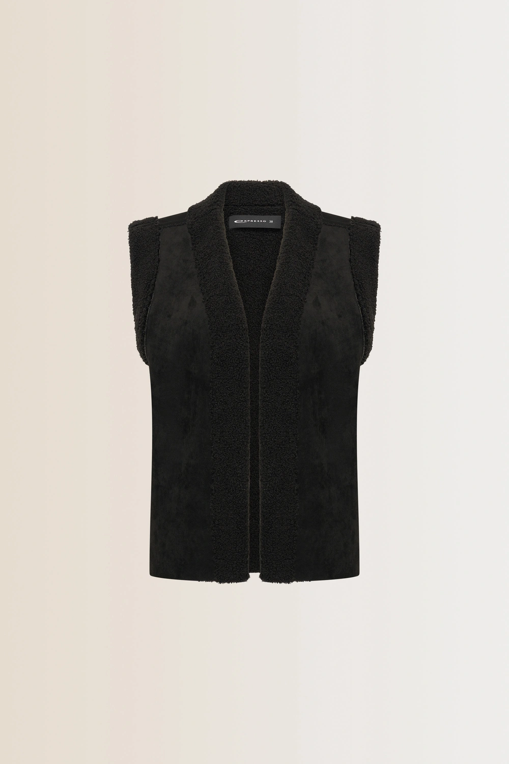 Zwart gilet – De zachte binnenzijde voelt behaaglijk aan, terwijl de suèdelook buitenkant zorgt voor een luxueuze uitstraling. Draag hem over een gebreide trui of blouse voor een gelaagde herfstlook met een stoere touch.