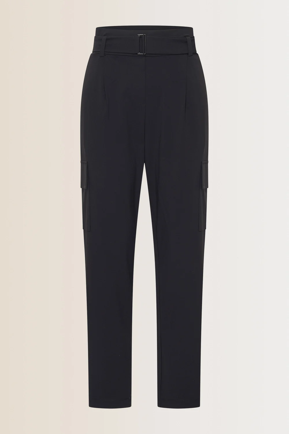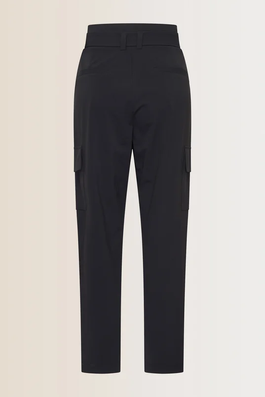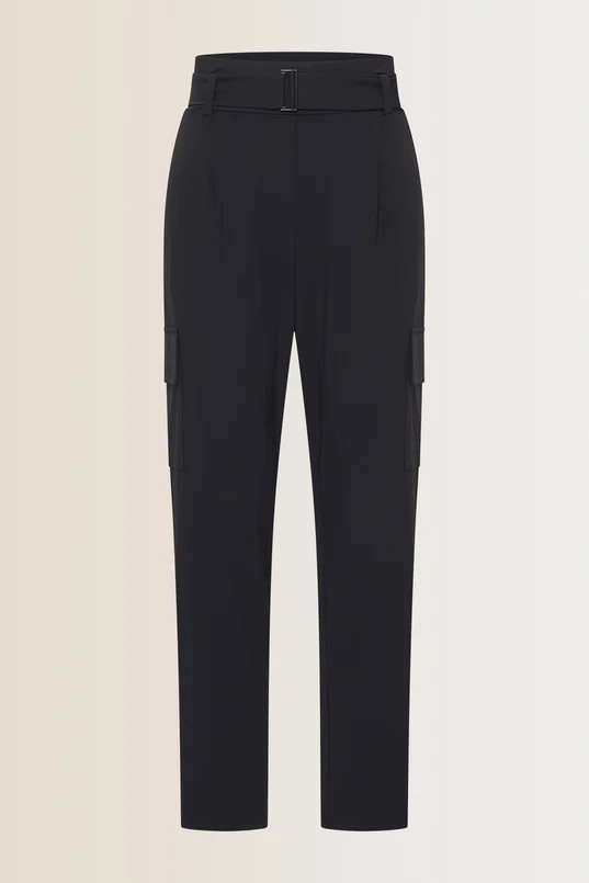 Zwarte pantalon – comfortabele stretchkwaliteit. Slank op de heup, licht uitlopend bij de zoom. De flatterende pasvorm en soepele stof maken deze broek een stijlvolle keuze voor zowel kantoor als casual momenten. Combineer met een blouse en blazer voor een zakelijke look, of draag met een zachte knit voor een moderne twist.