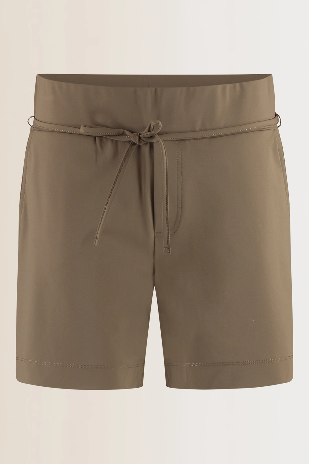 Bruine short – comfortabele stretchkwaliteit. Relaxed fit, met een hoge tailleband en trekkoordsluiting. Dankzij de soepelvallende stof en de praktische lengte is dit de perfecte short voor casual dagen. Combineer met een T-shirt en sneakers voor een sportieve look, of draag met een blouse en sandalen voor een relaxte zomeroutfit.