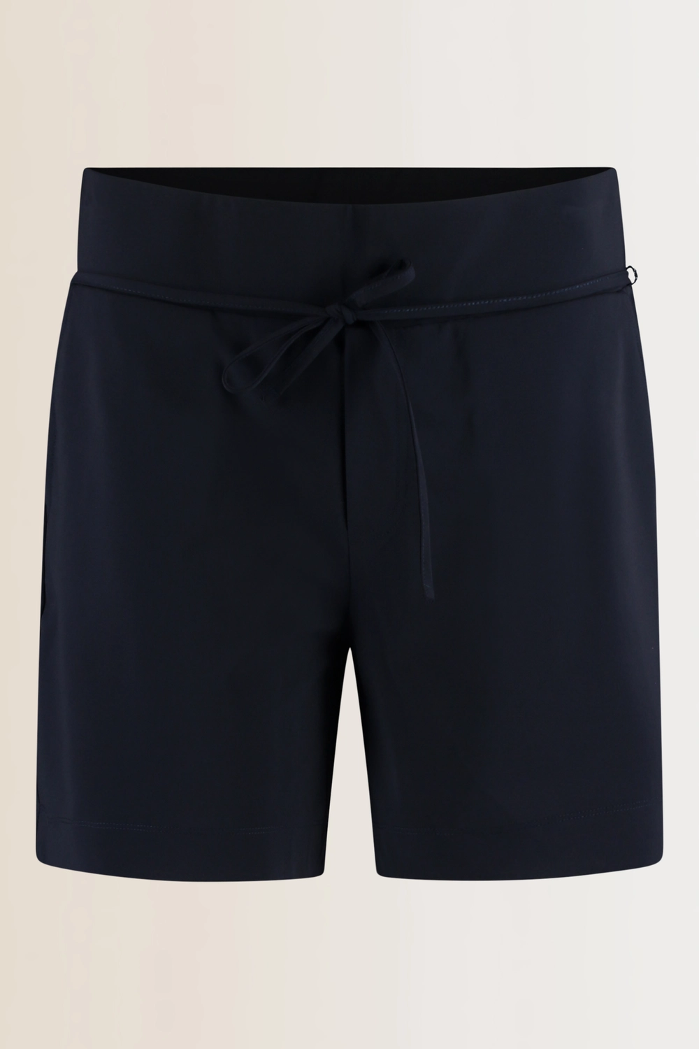 Donkerblauwe short – comfortabele stretchkwaliteit. Relaxed fit, met een hoge tailleband en trekkoordsluiting. Dankzij de soepelvallende stof en de praktische lengte is dit de perfecte short voor casual dagen. Combineer met een T-shirt en sneakers voor een sportieve look, of draag met een blouse en sandalen voor een relaxte zomeroutfit.