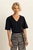 Witte top – stretch travelstof. Recht & relaxed, V-hals met staanderkraag, aangeknipte korte mouwen. Stretchy travelstof, kreukwerend en makkelijk in onderhoud. Een musthave voor daily life én holiday life! Tip: vormt met de bijpassende rok en jumpsuit een fijne travel capsule.