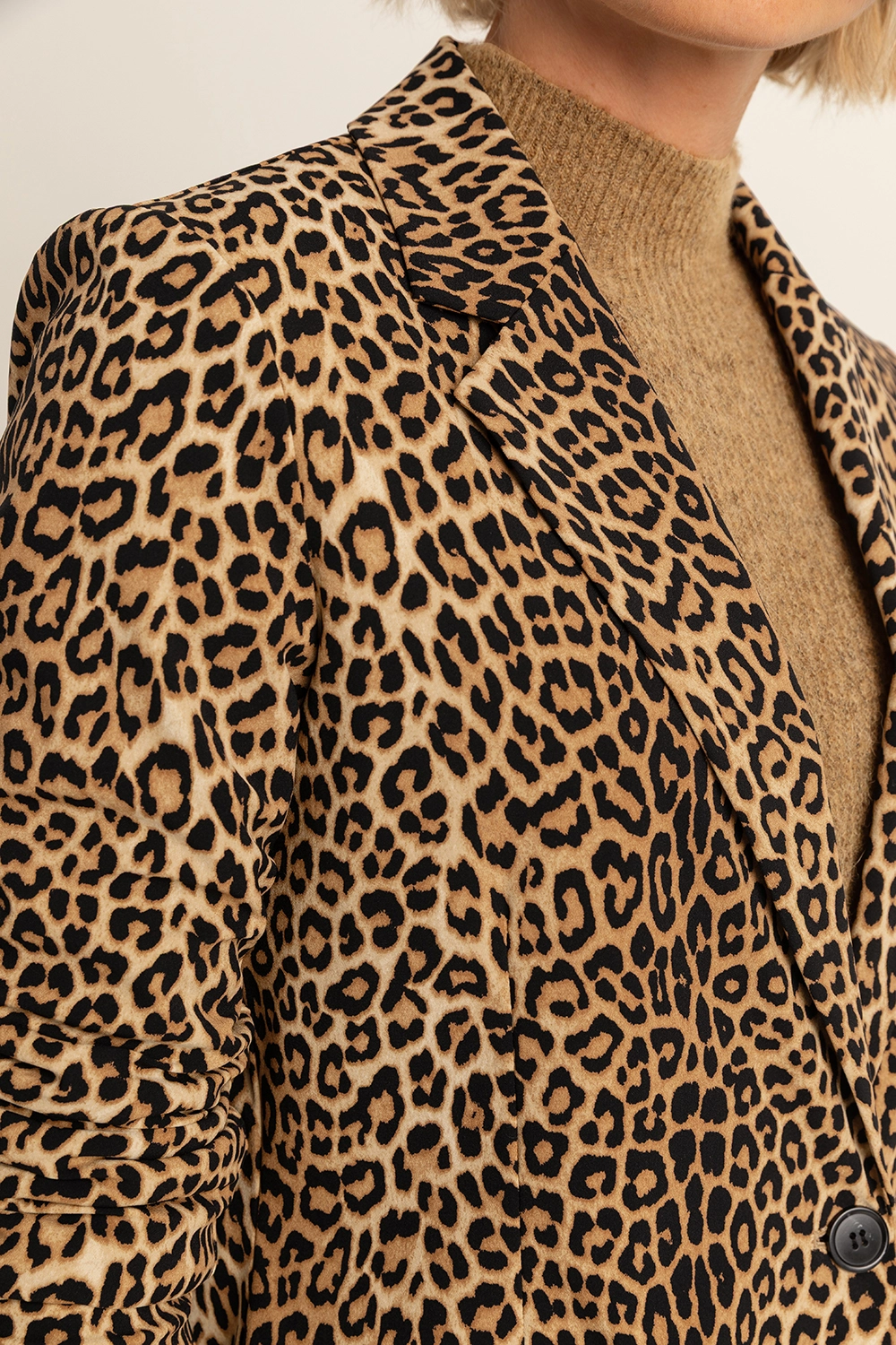 Leopard blazer – travelkwaliteit. Recht vallend, met een enkelvoudige knoopsluiting en klassieke revers. Het uitgesproken luipaarddessin geeft deze blazer een krachtige en modieuze uitstraling, terwijl de soepele stof zorgt voor een comfortabele fit. Perfect om een basic look direct meer pit te geven. Tip: draag over een zwarte top met een rechte broek voor een stijlvolle combinatie.